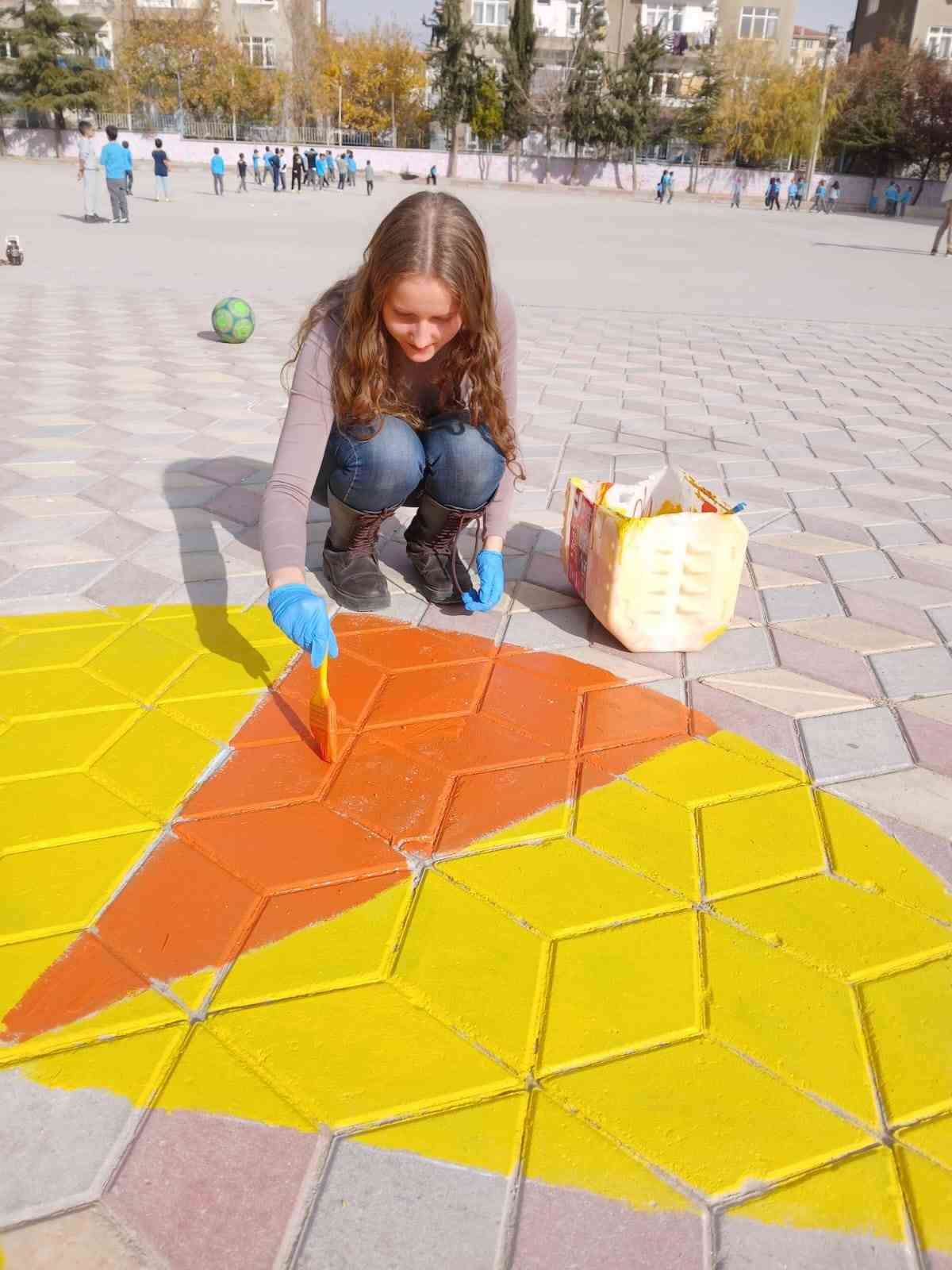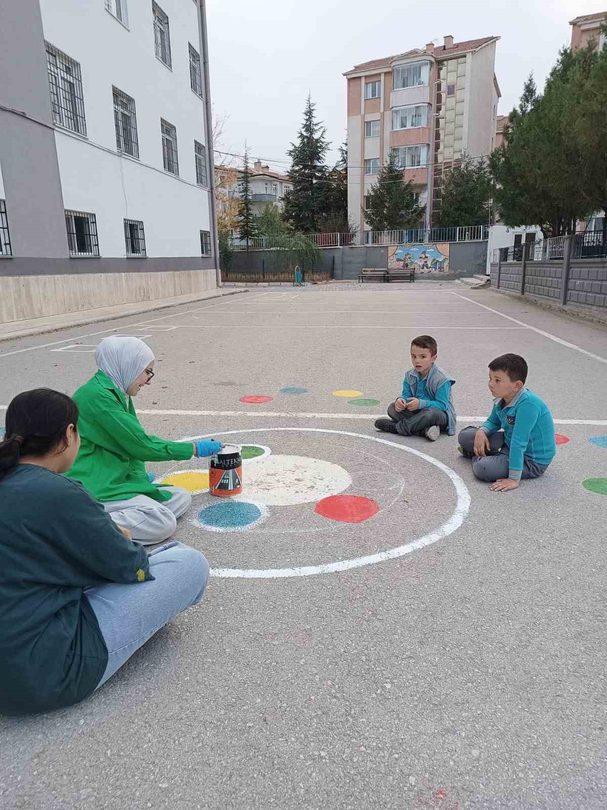 Gönüllü öğrenciler tarafından okul bahçesine çizilen oyun alanları ve etkinlik görselleri, ilkokul öğrencilerinin fiziksel hareketliliğini artırmayı, sosyal etkileşimlerini güçlendirmeyi ve eğlenceli bir öğrenme ortamı sunmayı amaçlıyor. Gerçekleştirilen çalışma sayesinde öğrenciler, teneffüs ve serbest zamanlarını daha verimli ve keyifli bir şekilde değerlendirme imkanı bulacak.