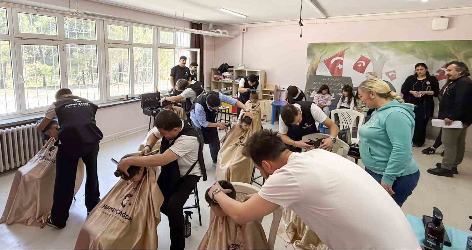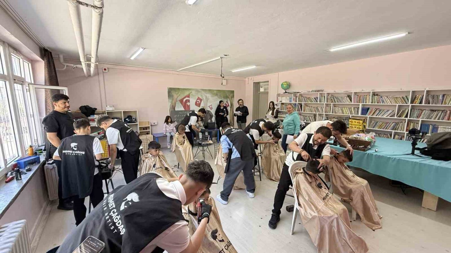 Saç kesimlerinin tamamlanmasının ardından okul bahçesinde kuaförlerle tenis oynayıp futbol maçı yapan öğrenciler, bando takımıyla birlikte borazan çalmak isteyen ancak bunda başarılı olamayan ağabeylerinin komik denemeleriyle keyifli anlar yaşadı. Öğretmenler ve veliler, geleneksel hale getirdiği anlamlı projesiyle bu yıl İsabey Mahallesi’nde yaşayan çocukların tebessüm etmesini sağlayan Mehmet Çağdaş ve ekibine teşekkür etti.