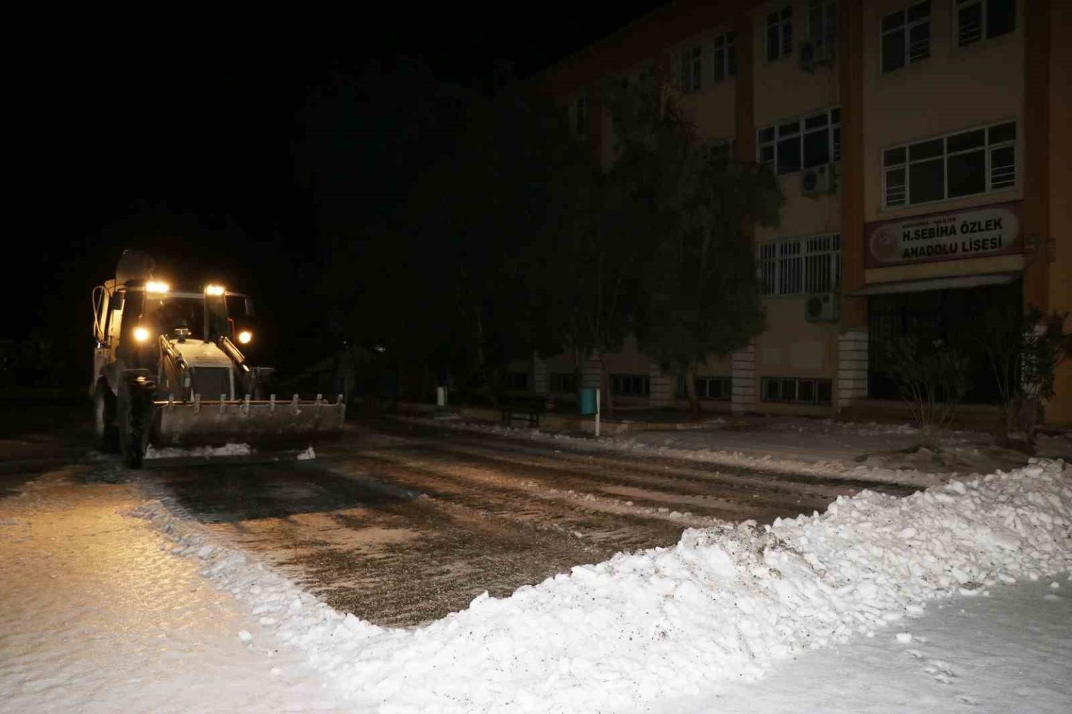 Şanlıurfa’da yoğun kar yağışı nedeniyle ara verilen eğitimin yarın yeniden başlama ihtimaline karşı okullarda kar temizliği yapılıyor.