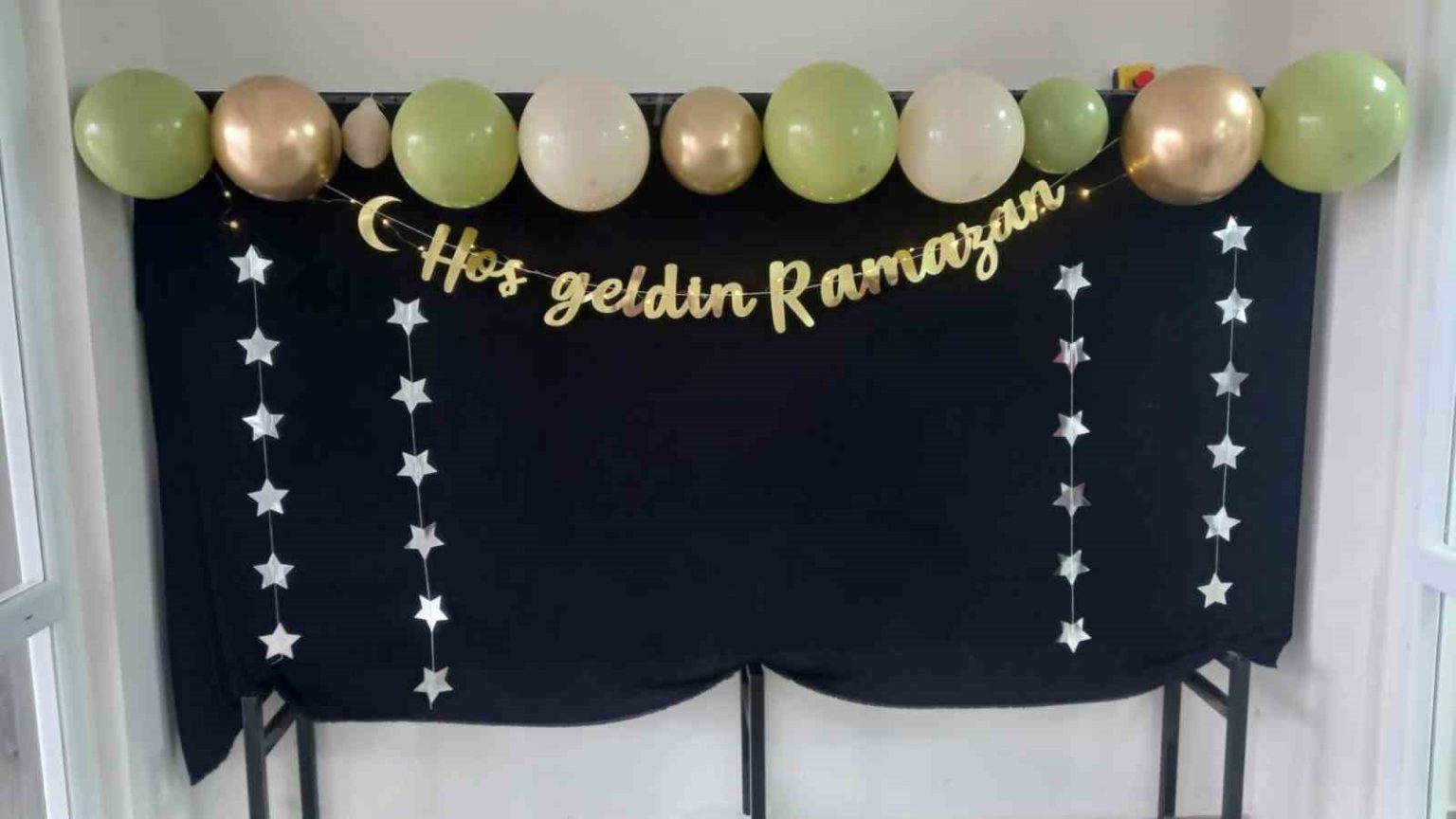 Okul salonunda hazırlanan ve üzerinde “Hoş Geldin Ramazan” yazısının yer aldığı pano, balonlarla süslendi. Öğrenciler ve öğretmenler, hazırlanan Ramazan Köşesi önünde hatıra fotoğrafı çektirdi.