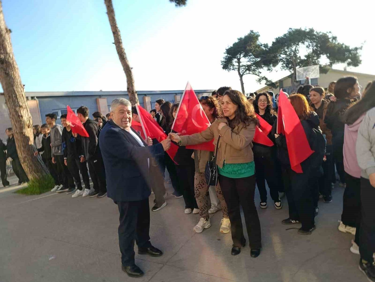 Eğitim-Bir-Sen Balıkesir 1 Nolu Şube Başkanı Ercan Kurter, pazartesi sabah okullarda Türk bayraklı törenlere katıldı. Kurter öğretmen ve öğrencilere Türk bayrağı dağıttı.