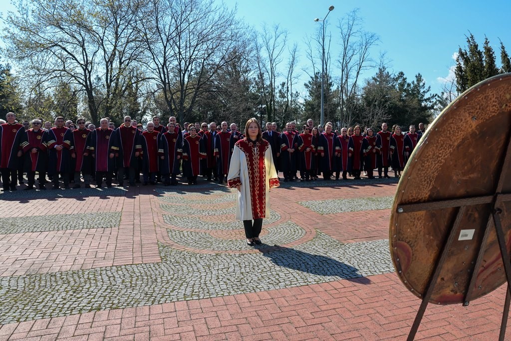 Program kapsamında gerçekleştirilen törende, saygı duruşunda bulunulmasının ardından İstiklal Marşı okundu ve Rektör Prof. Dr. Fatma Aydın tarafından üniversite çelengi Atatürk Anıtı’na sunuldu.