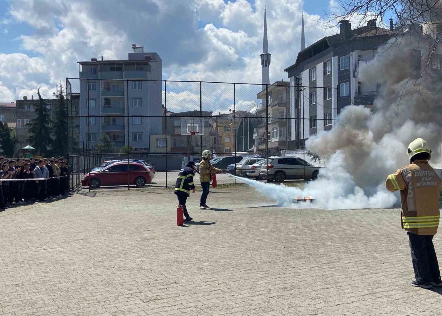 Ünye Mustafa Rakım Anadolu Lisesi ile Ordu Büyükşehir Belediyesi İtfaiye Dairesi Başkanlığı Eğitim Birimi iş birliğinde gerçekleştirilen etkinlikte, yangın söndürme, okul tahliyesi ve temel ilk yardım konuları ele alındı. Eğitim kapsamında ilk olarak okul binasının güvenli bir şekilde boşaltılmasını içeren tahliye tatbikatında 480 öğrenci uzmanların yönlendirmesiyle saniyeler içinde okul bahçesindeki güvenli alana ulaştı. Tahliyenin ardından itfaiye ekipleri, yangın tüpü kullanımı ve alevlere doğru müdahale tekniklerini uygulamalı olarak gösterdi.