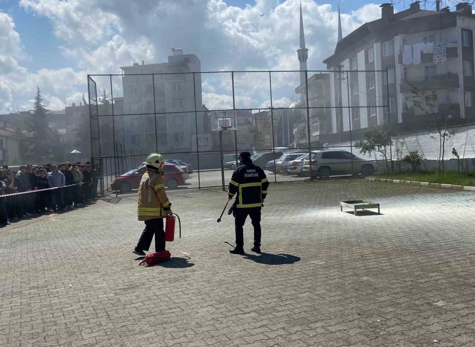 Ordu’nun Ünye ilçesinde eğitim gören 480 öğrenci, Büyükşehir Belediyesi İtfaiye Daire Başkanlığı ekiplerinden uygulamalı yangın söndürme ve ilk yardım eğitimi alarak acil durumlara karşı bilinçlendirildi.