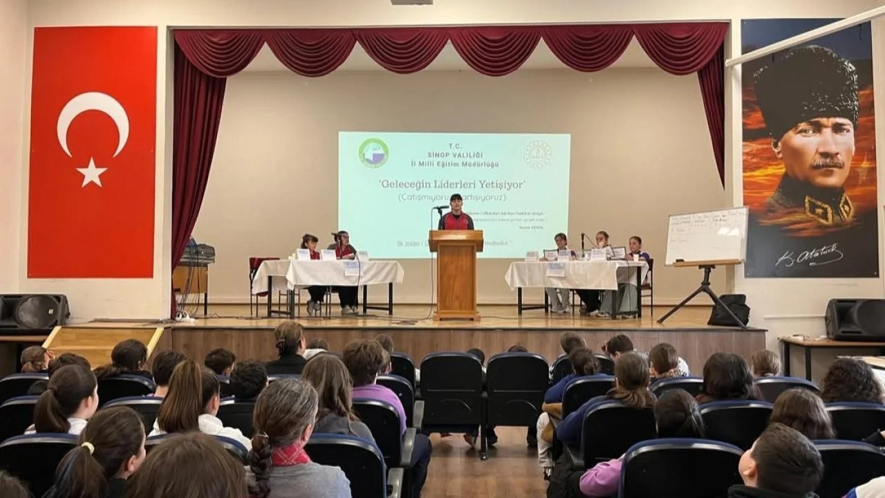Sinop’ta ortaokul öğrencileri, münazarada fikirlerini savunarak heyecan dolu bir yarış sergiledi.