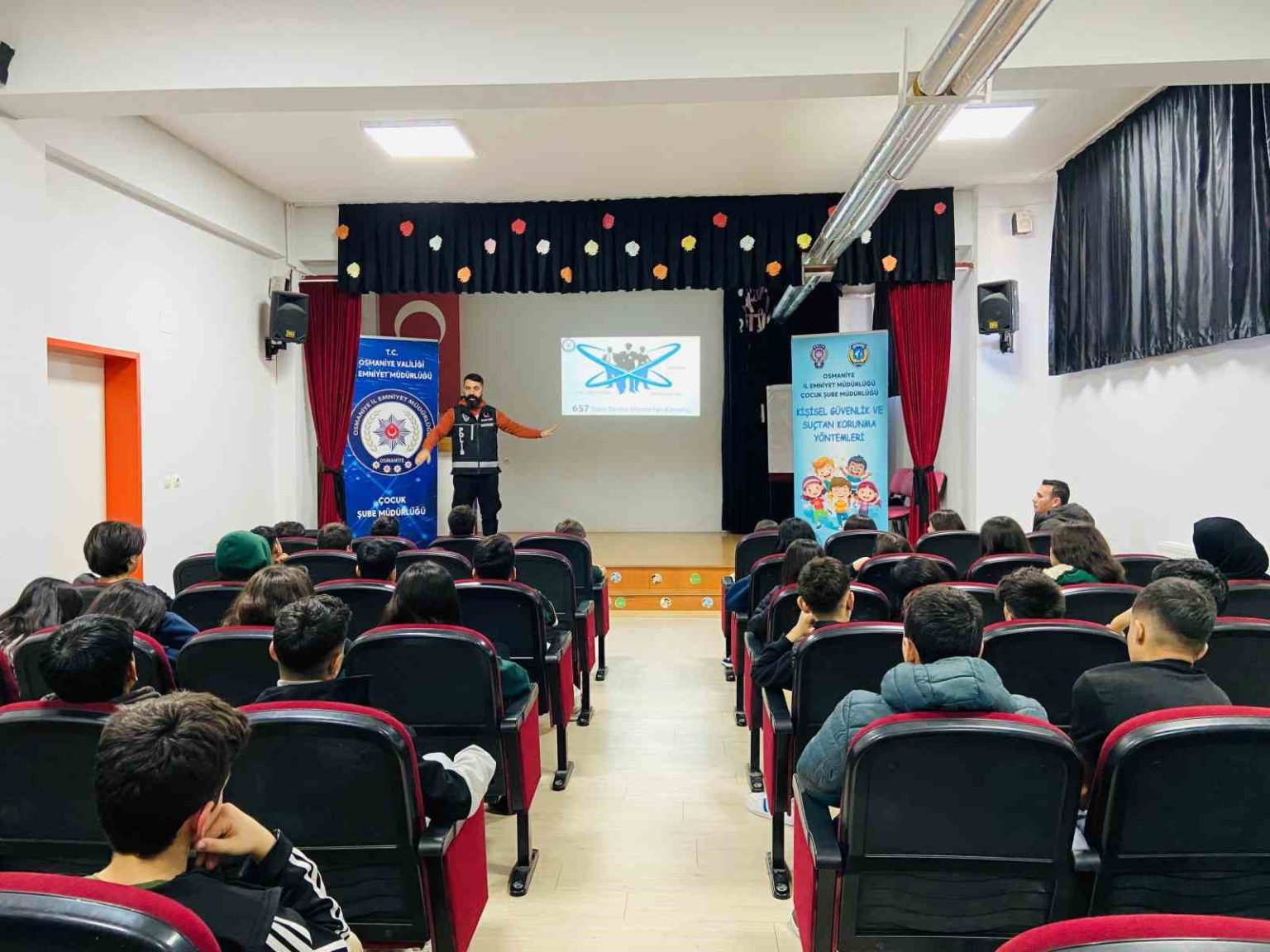 Osmaniye İl Emniyet Müdürlüğü Çocuk Şube Müdürlüğü personelince, eğitim kapsamında Mehmet Akif Ersoy Kız Mesleki ve Teknik Anadolu Lisesi ve Şehit Yasemin Tekin Ortaokulu’nda ise öğrenci ve öğretmenler bilgilendirildi. Düzenlenen seminerlerde toplam 263 öğrenci ile 11 öğretmen eğitim aldı. Seminerlerde öğrencilere; kişisel güvenlik, suçtan korunma yolları, riskli durumlarda yapılması gerekenler ve güvenli davranış alışkanlıkları hakkında bilgilendirme yapıldı.
