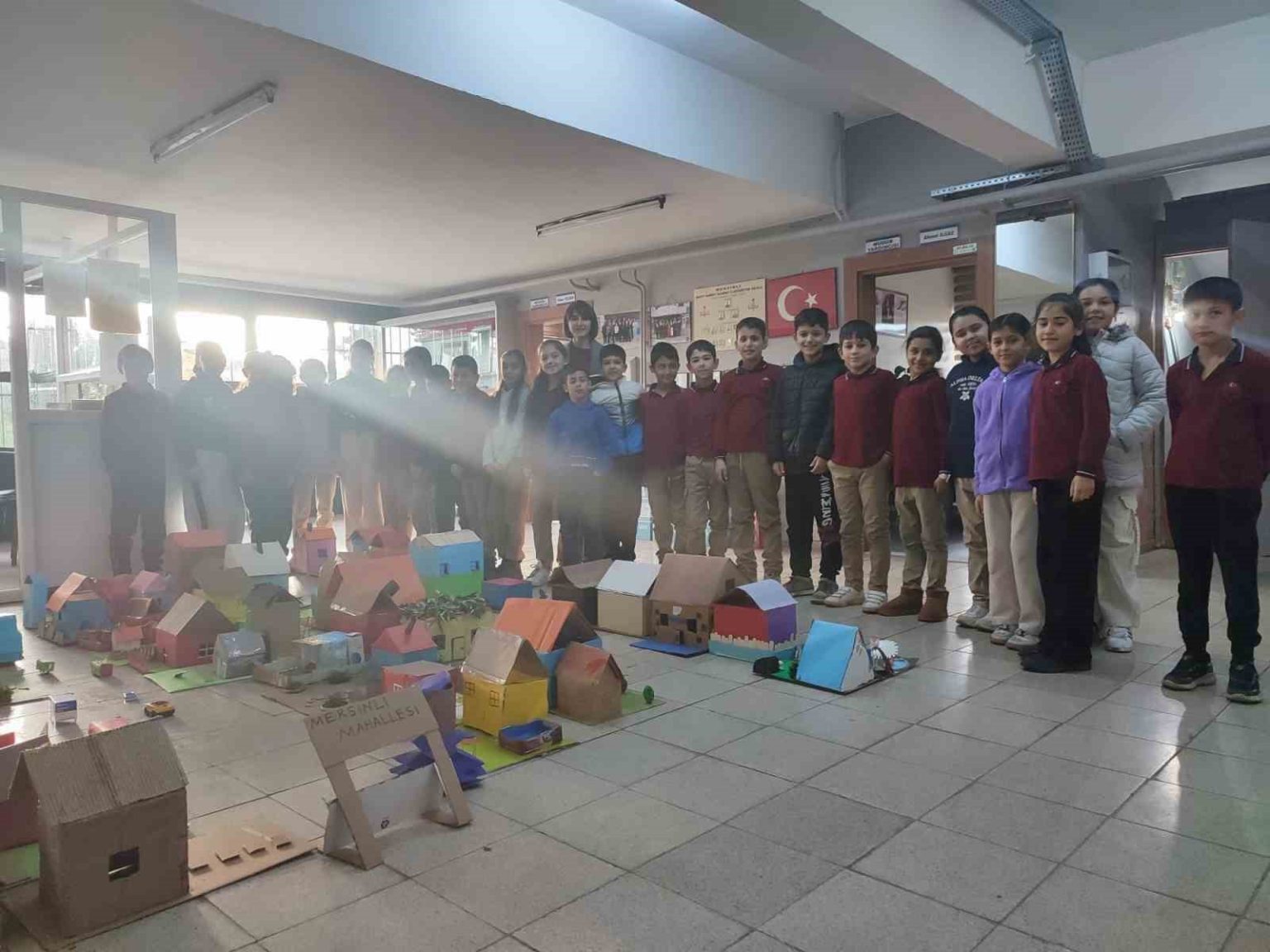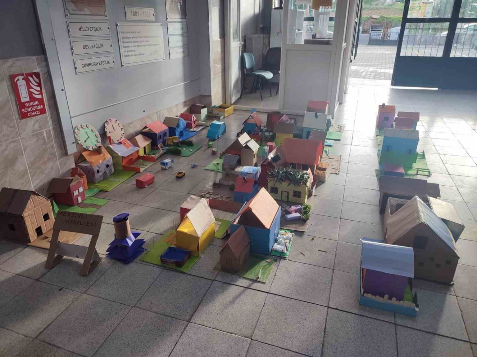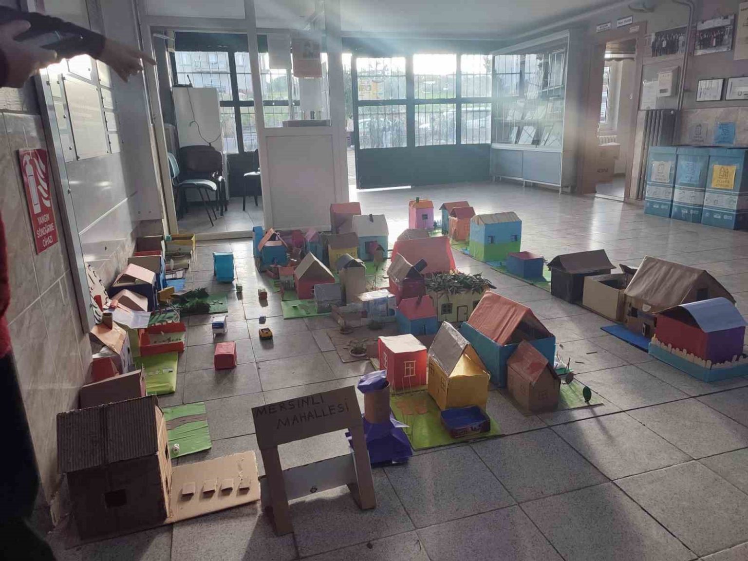 Proje etkinliği kapsamında karton, plastik, pet şişe ve benzeri atık materyallerden evler, arabalar ve çeşitli nesneler tasarlayan öğrenciler, ortaya koydukları çalışmalarla büyük beğeni topladı. Okulda açılan sergi, hem öğrenciler hem de öğretmenler tarafından ilgiyle gezildi.