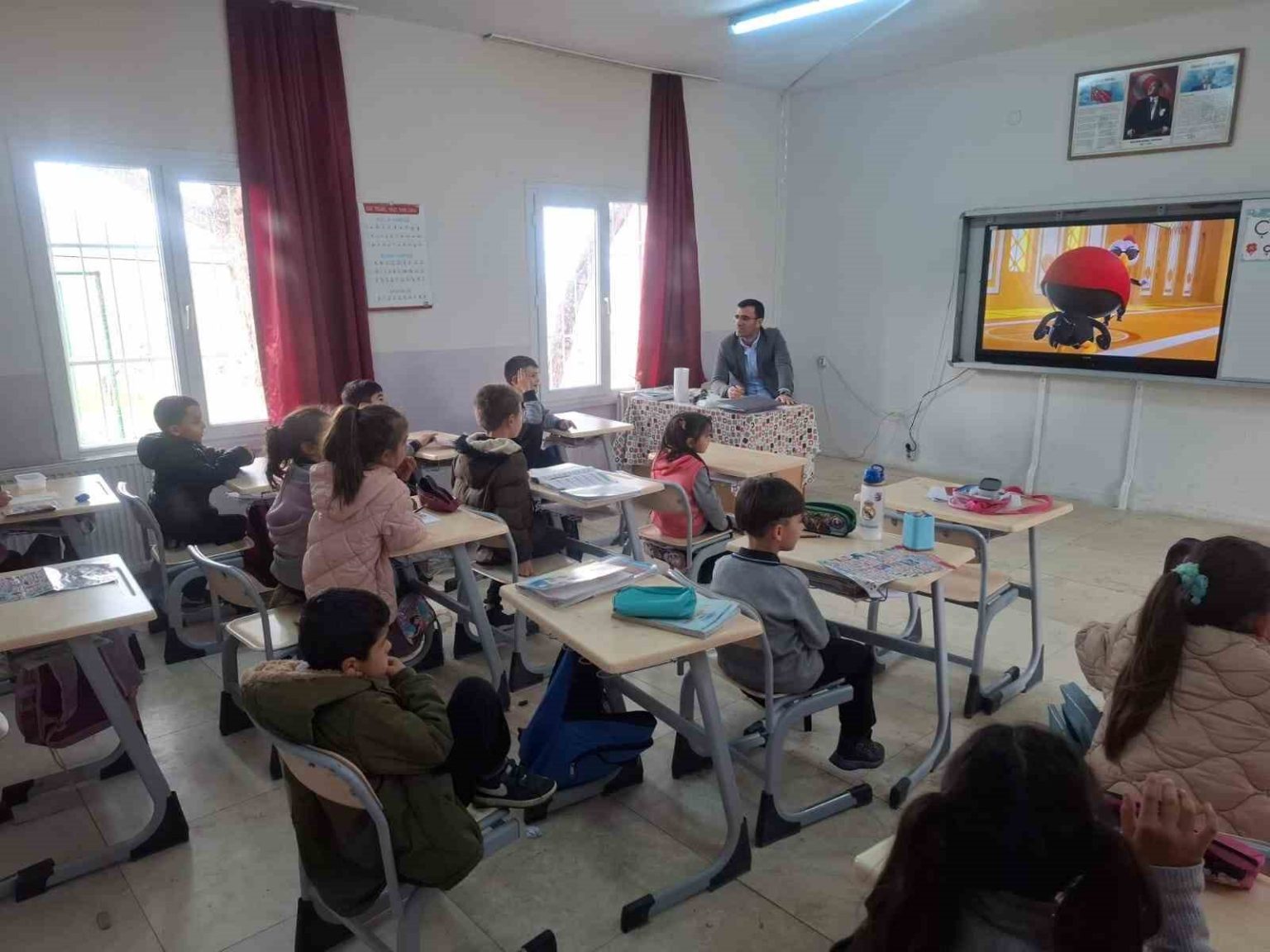 Bu kapsamda Sarıgöl ilçesine bağlı Alemşahlı Mahallesi’nde bulunan okulu ziyaret eden İlçe Milli Eğitim Müdürü Cezmi Yıldırak, ilkokul birinci sınıf öğrencileriyle birlikte akıllı tahtada çizgi film izledi. Film sonrası öğrencilerle sohbet eden Yıldırak, çocukların izledikleri çizgi film hakkındaki düşüncelerini alarak değerlendirmelerde bulundu.