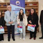 Öğrencilere kitap okuma alışkanlığı kazandırmak ve farkındalık oluşturmak amacıyla Sinop Üniversitesi Merkez Kütüphanesinde gerçekleştirilen etkinlikte öğrencilerle bir araya gelen Rektör Prof. Dr. Şakir Taşdemir, öğrencilerin ve personelin Kütüphane Haftası’nı kutladı. Kitap okuma etkinliğinin ardından, Sinop Üniversitesi kütüphanesinden en çok kitap okuyan öğrencilerden Sağlık Bilimleri Fakültesi Hemşirelik Bölümü öğrencisi İlayda Karataş, Fen-Edebiyat Fakültesi Türk Dili ve Edebiyatı Bölümü öğrencisi Gamze Yalçın ve Güzel Sanatlar ve Tasarım Fakültesi Müzikoloji Bölümü öğrencisi Hamide Kalındamar’a çeşitli hediyeler takdim edildi.