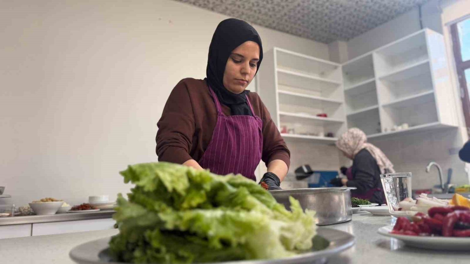 Siverek’te aşçılık kursuna giden kadınlar yöresel yemekler yapıp sofraları süslüyor