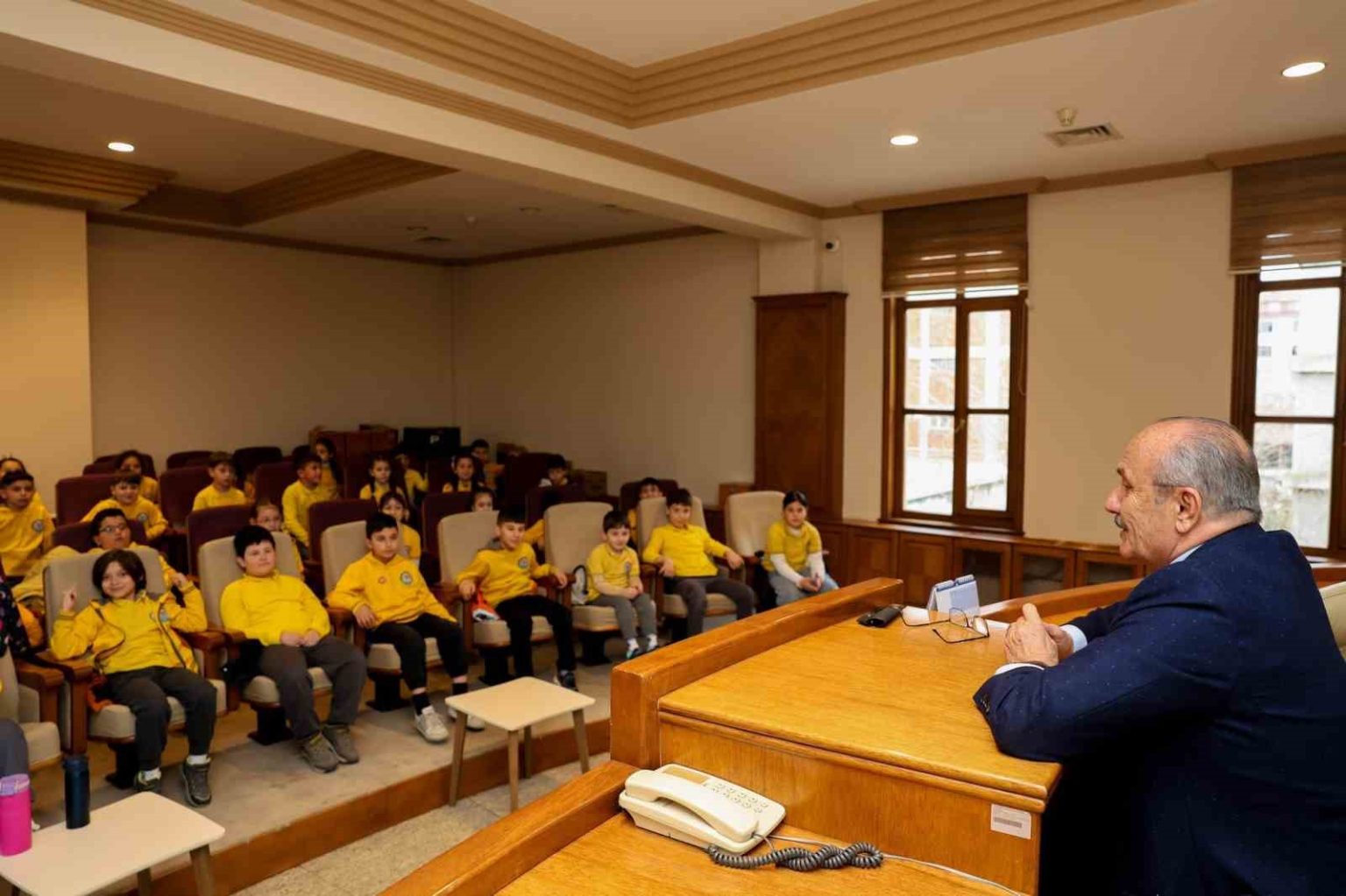 Kastamonu’nun Taşköprü ilçesinde Muzafferettin Gazi İlkokulu öğrencileri, Taşköprü Belediyesini ziyaret ederek Belediye Başkanı Hüseyin Arslan ile bir araya geldi.