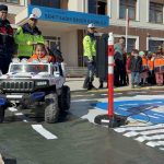Direksiyon başına geçen minikler, öğrendikleri bilgileri birebir deneyimleme fırsatı buldu. Eğitimlerin sonunda jandarma ekipleri tarafından öğrencilere trafik bilincini artırmaya yönelik düdük ve kitap hediye edildi.