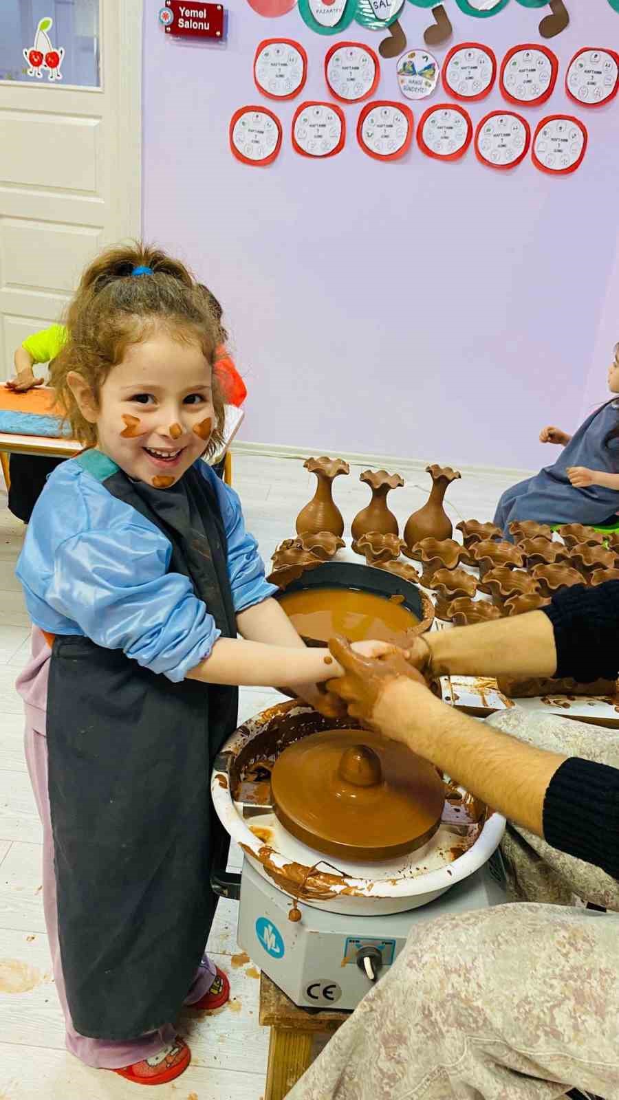 Cumhuriyet Üniversitesi Vakfı Okulları Özel Günay Soluk Anaokulu’nda düzenlenen çömlek etkinliğinde minik öğrenciler hem üretmenin hem de öğrenmenin keyfini yaşadı