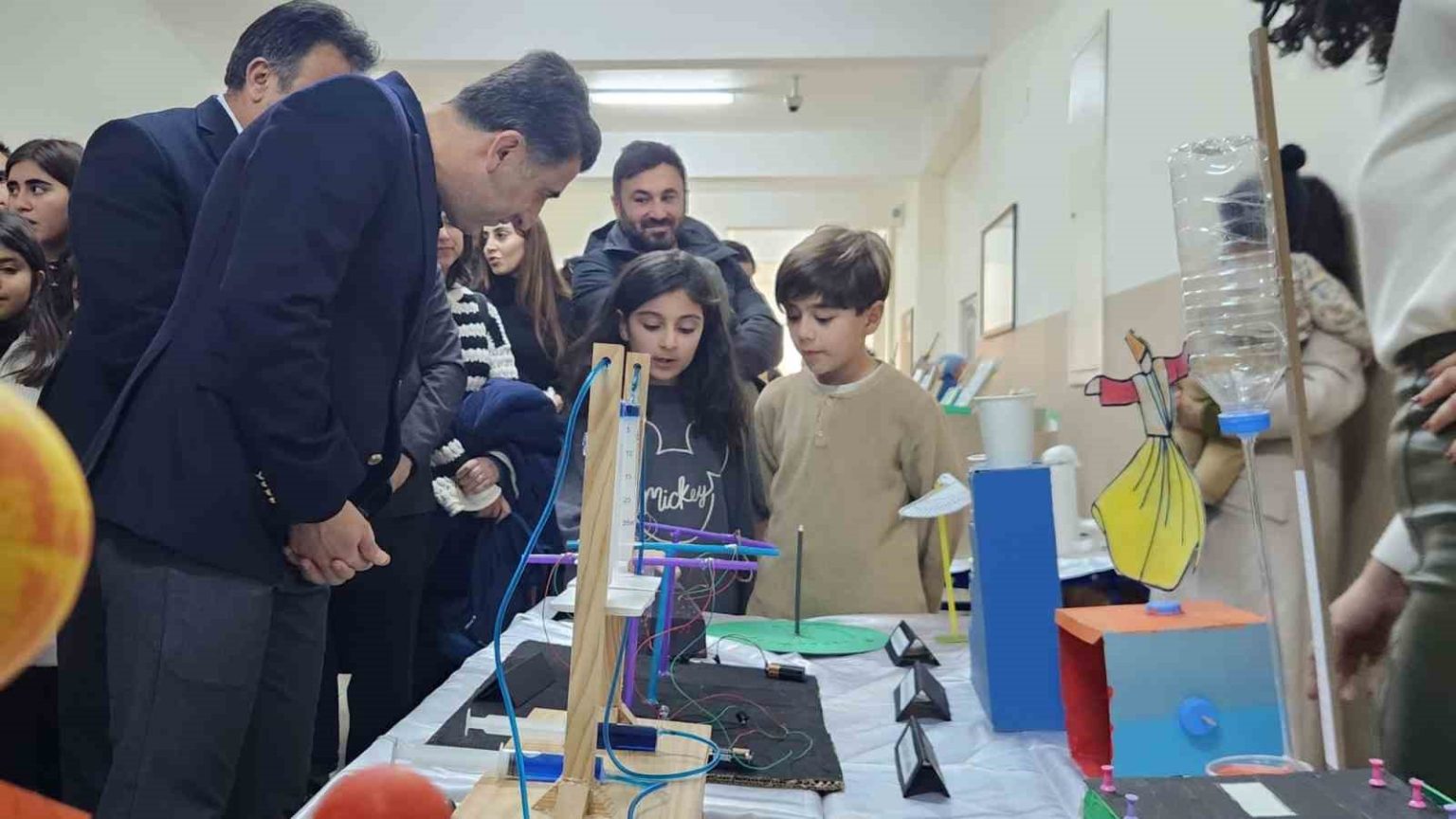 Limonlarla elektrik üreten Reha Furkan Işık isimli öğrenci, “Bugün limonla elektrik üretme deneyimi gerçekleştirdim. Deneyimizde çinkoyla istediğimiz ve istemediğimiz her madeni alıyoruz. Sonra bunlardan istenmeyenleri bakırla diğer limonumuza aktarıyoruz. Ardından aynı pil yatağı görevi gören madeni paramızı alıp limonumuza koyuyoruz ve limonumuzu da paraya bağlıyoruz. Böylece saatimiz çalışıyor”