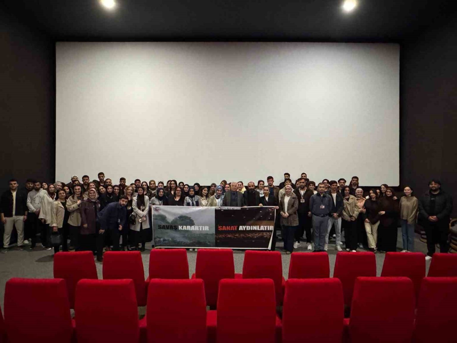 Elazığ’da Fırat Üniversitesi öğrencileri “Savaş Karartır, Sanat Aydınlatır” sloganlı sosyal sorumluluk projesini sinema aracılığıyla hayata geçirdi.