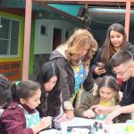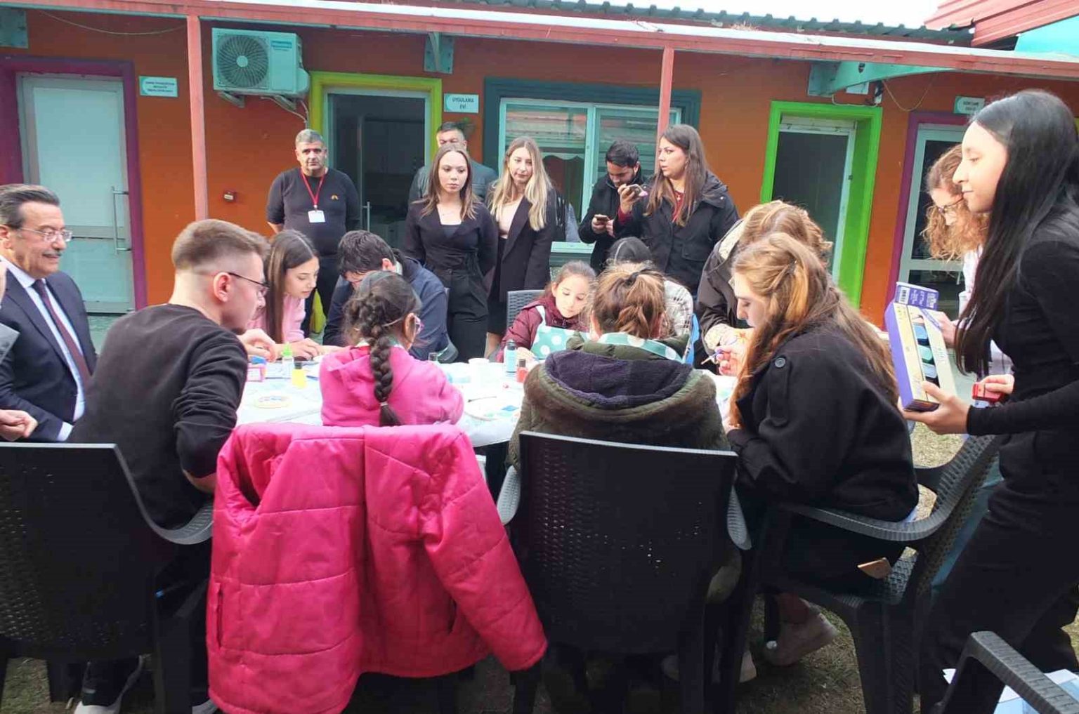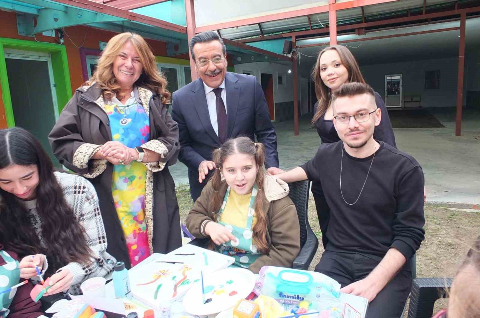 Sezai Sarıdal da, “Tuval boyama etkinliği yapıyoruz. Öğrencilerimizle samimi olduk. Çok mutlular. Birlikte onlara katkı sağlıyoruz” diye konuştu.