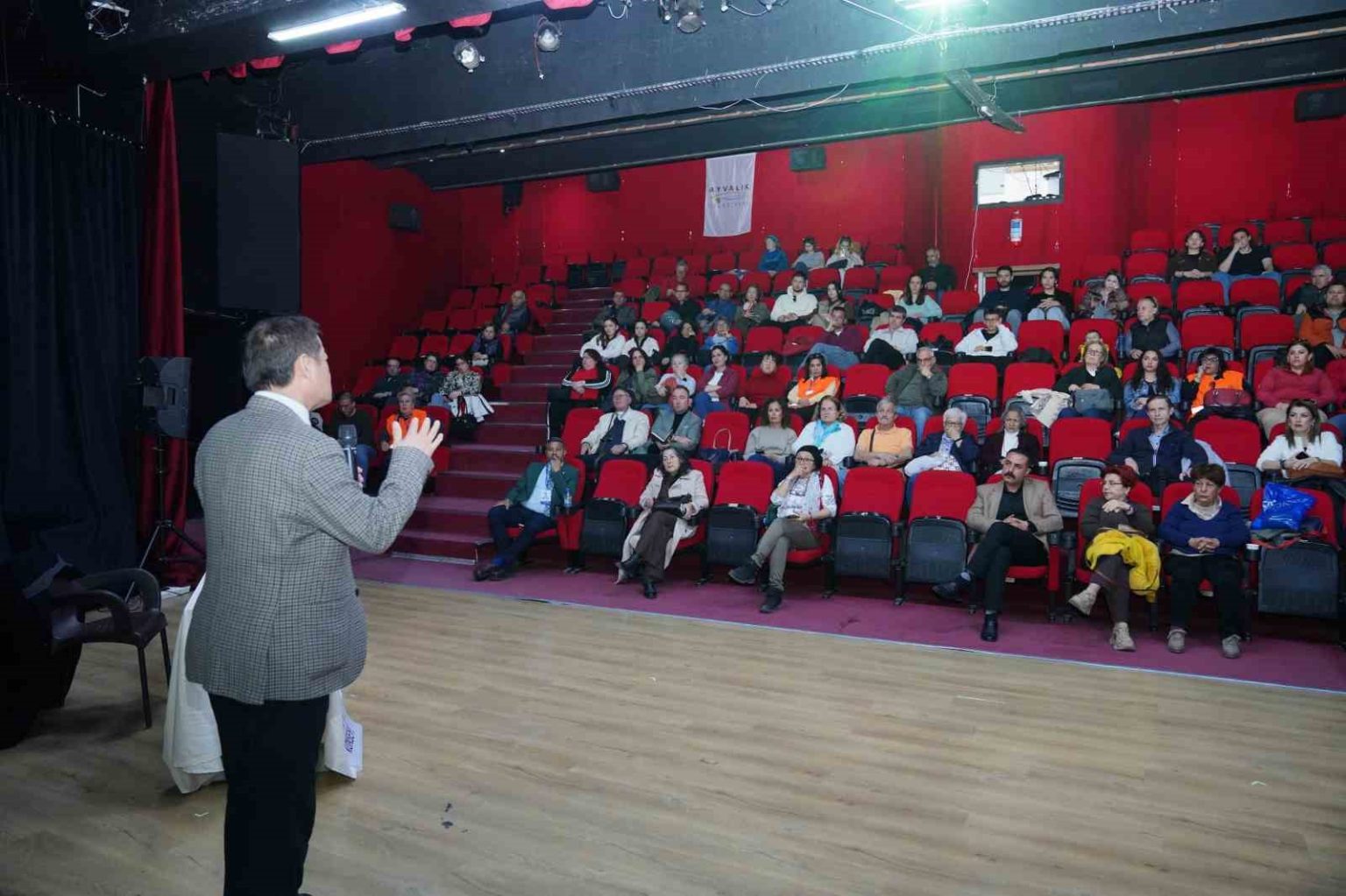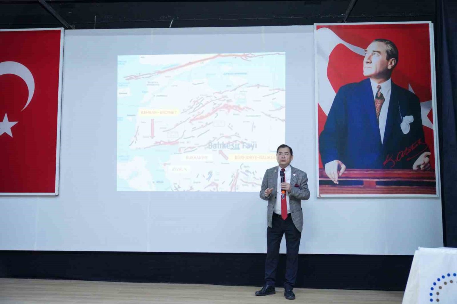 Ayvalık Belediyesi’ne ait Vural Sineması Nejat Uygur Sahnesi’nde gerçekleşen konferansa, Japon deprem uzmanı Yoshinori Moriwaki konuşmacı olarak katıldı.
