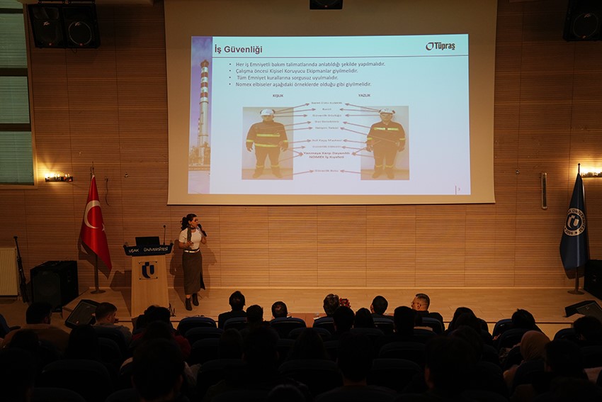 Kariyer Günü’25 kapsamında düzenlenen özel oturumda Uşak Üniversitesi mezunu Kıdemli Bakım Mühendisi Nilay Yurtören, tecrübelerini paylaştı. Yurtören; öğrenci sıralarından başlayarak pozisyonuna uzanan başarı hikâyesini dinleyicilerle paylaştı. Uşak Üniversitesi’nde aldığı eğitimin kariyer yolculuğundaki belirleyici rolüne dikkat çeken Nilay Yurtören, azim ve sürekli gelişimin meslek hayatındaki önemini vurguladı. Yurtören; konuşmasında ayrıca dönüştürülebilir enerji sistemlerine odaklanarak genç mühendislere geleceğin enerji alanlarında cesur adımlar atmaları yönünde ilham verdi.