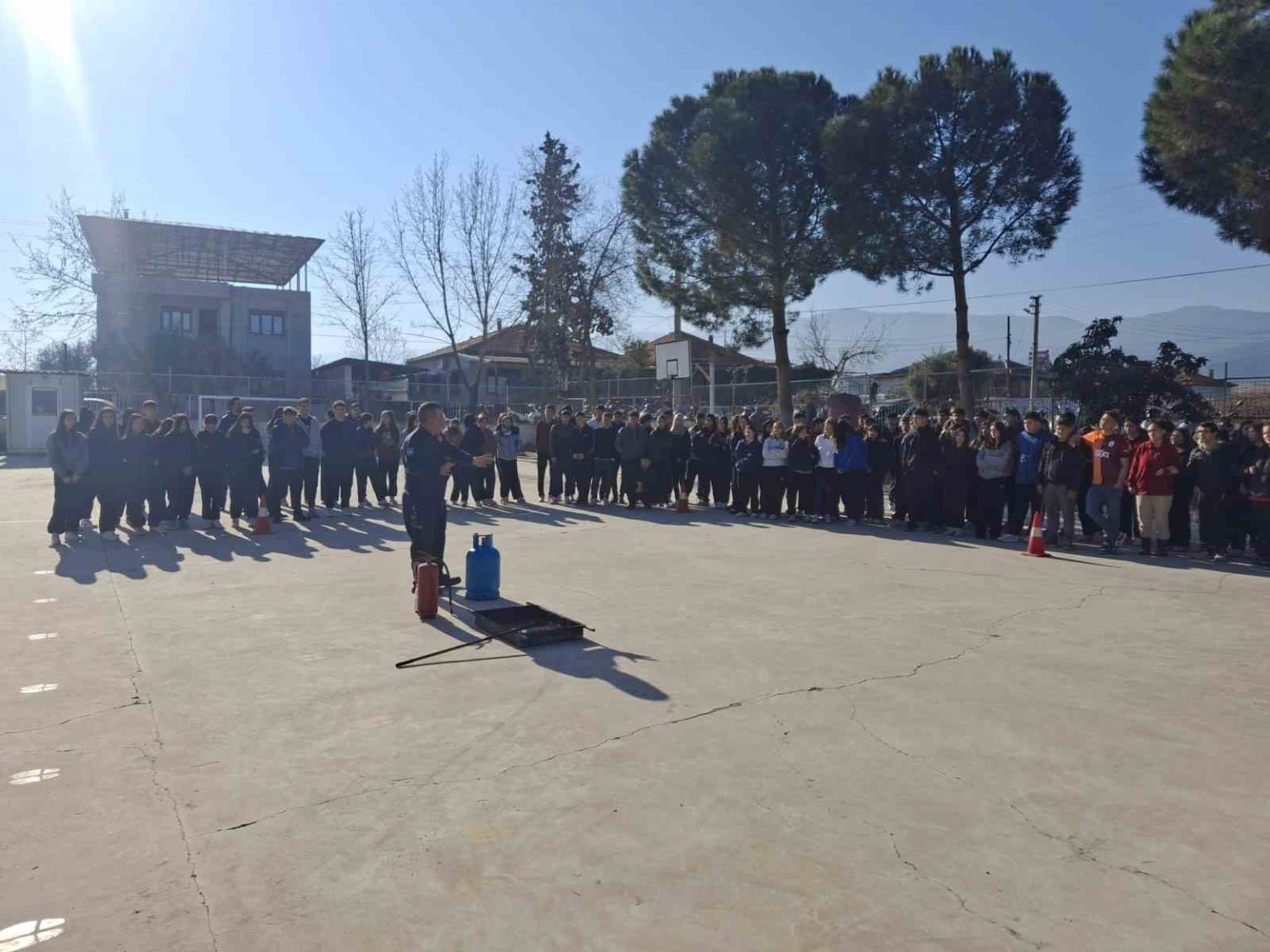 Tatbikatta öğrencilere yangın çıkış nedenleri ve alınması gereken önlemler hakkında da kapsamlı bilgiler verildi.