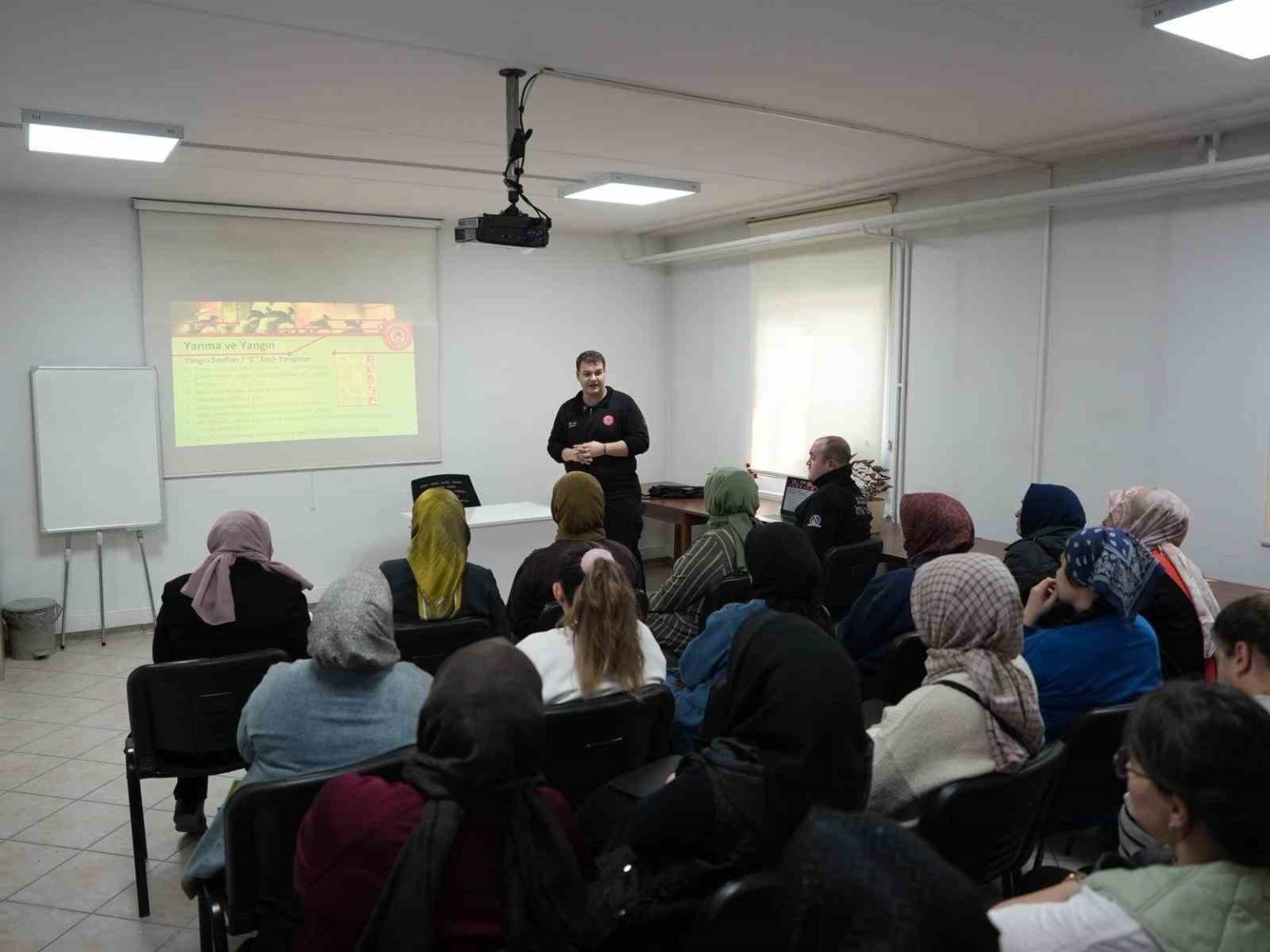 Eğitimin uygulamalı bölümünde ise yangın söndürme tüpünün doğru ve güvenli kullanımı anlatılarak, kursiyerlere birebir müdahale pratiği yaptırıldı. Olabilecek yangın durumlarında bilinçli ve doğru hareket etmenin önemini öğrenen kursiyerler, eğitimden duydukları memnuniyeti dile getirdi.