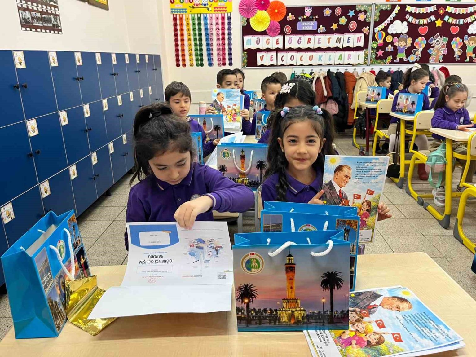 Türkiye genelinde 2025-2026 eğitim öğretim yılının ilk döneminin sona ermesiyle birlikte İzmir’de de öğrenciler karne heyecanı yaşadı. Kent genelinde eğitim gören 721 bin 862 öğrenci için yarıyıl tatili başladı. Bayraklı Şehit Polis Fethi Sekin İlkokulu’nda gerçekleştirilen karne törenine katılan İzmir Valisi Süleyman Elban, İzmir Vali Yardımcısı Erkan Karahan, İzmir İl Milli Eğitim Müdürü Ömer Yahşi, İl Milli Eğitim Müdür Yardımcısı İlker Eraslan ile İlçe Milli Eğitim Şube Müdürleri Baran Can, Kenan Özdemir, Selviye Bulucu ve Fadime Pelin Aldemir, öğrencilerin heyecanına ortak oldu.