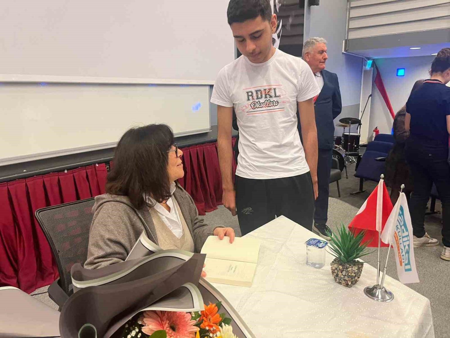 Latife Tekin’in işlediği konular itibarıyla Türkiye’nin ender yazarlarından biri olduğunu vurgulayan Şeneken, “Gerçek olaylara, gecekondulaşmaya, köyden kente göçe ve doğa olaylarına değindiği için yazarımızı öğrencilerimizle buluşturmak bizim için çok kıymetliydi. Bugün öğrencilerimiz sorularını sordular. İmza etkinliği ve söyleşide bir araya geldiler. Sağladığı katkılardan dolayı yazarımıza tekrar teşekkür ediyoruz. Yazar söyleşileriyle öğrencilerimizi her zaman bir araya getirmeye devam edeceğiz” ifadelerini kullandı.