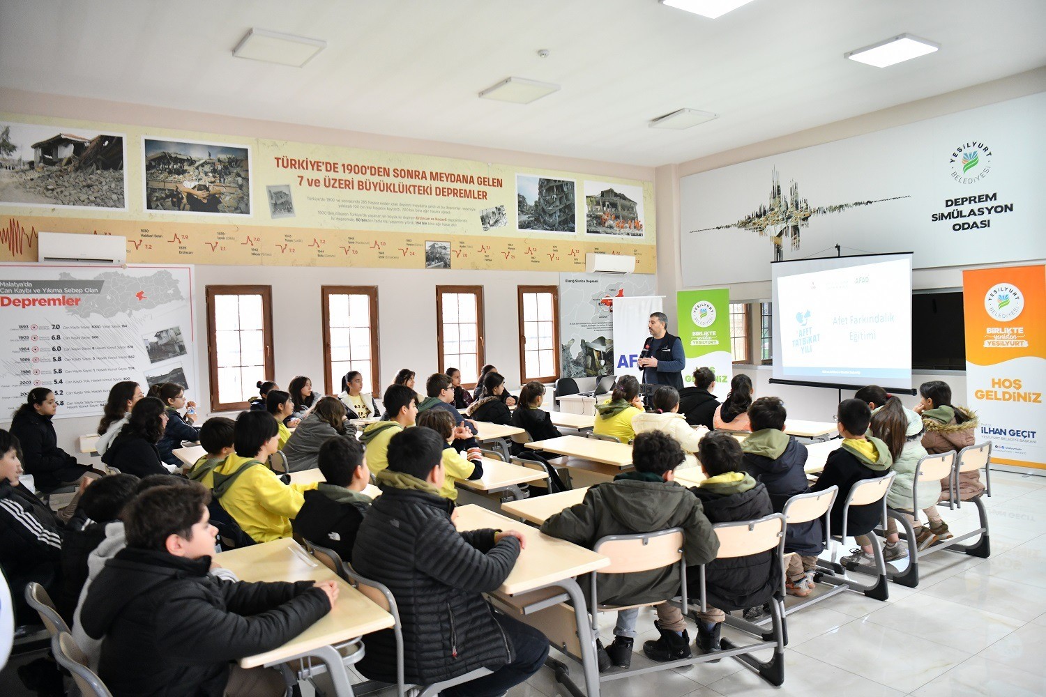 Yeşilyurt Belediyesi Afet İşleri ve Risk Yönetimi Müdürlüğü, afetlere karşı bilinçli ve hazırlıklı nesiller yetiştirmek amacıyla Deprem Eğitim ve Simülasyon Merkezinde öğrencilere yönelik kapsamlı deprem eğitimleri vermeye devam ediyor. İlçedeki farklı okullardan gelen öğrencilerin yoğun ilgi gösterdiği eğitim programlarında, deprem öncesi, deprem anı ve deprem sonrası yapılması gerekenler uygulamalı ve interaktif yöntemlerle anlatılıyor.