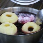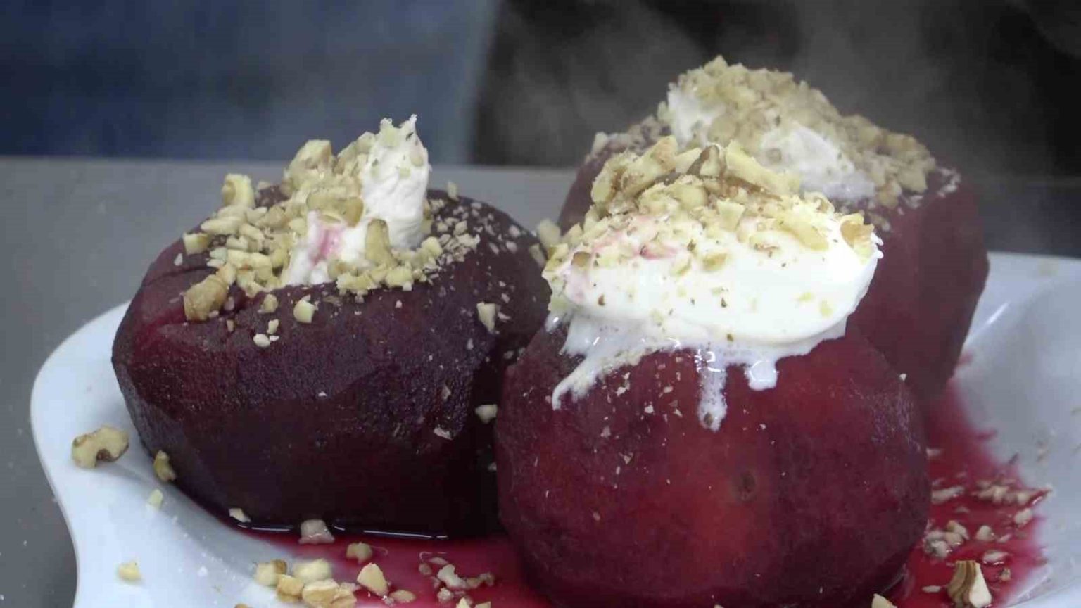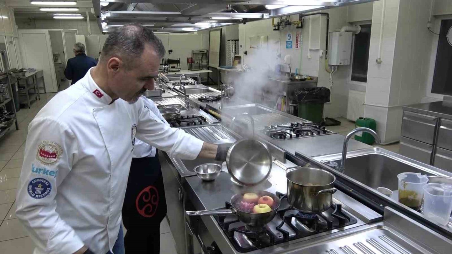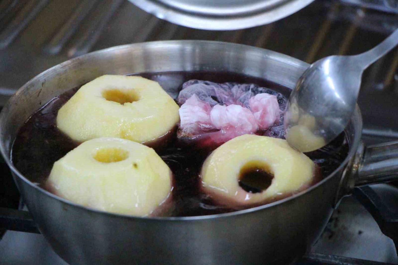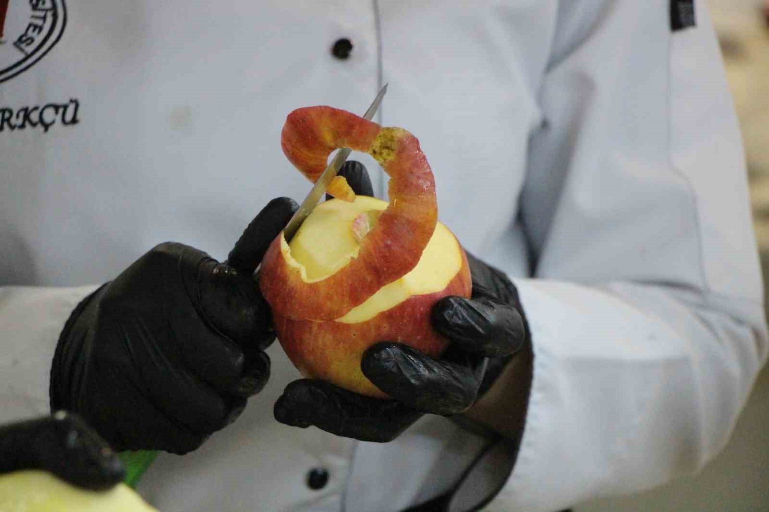 Elma tatlısının tarifini anlatan Başün, “Elmalar temizlenip soyacak yardımıyla ortasını açılıyor. Tencereye yerleştirip içlerine ve her elmanın ortasına bir yemek kaşığı şeker ekleniyor. Üzerlerine hibiskus ve tarçın ilave edip kısık ateşte ağzı kapalı pişiriliyor. Soğuyunca elmaların içine ceviz, fıstık ekleyip üzerini kaymak ile süsleniyor” diye konuştu.