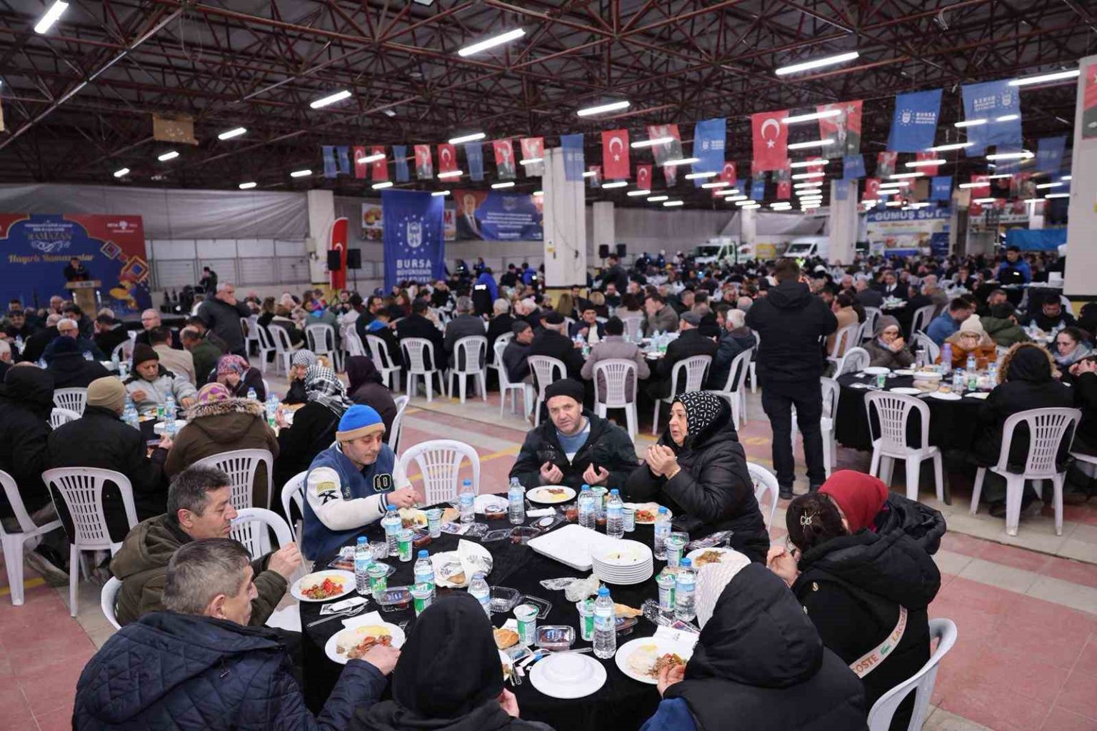 Ramazan’ın birleştirici ve manevi iklimini kentin tümüne yayan Bursa Büyükşehir Belediyesi, geleneksel iftar programlarını Mustafakemalpaşa ile sürdürdü. Mustafakemalpaşa Kapalı Pazar Alanı’nda düzenlenen iftar programına, Bursa Büyükşehir Belediye Başkanı Mustafa Bozbey ve eşi Seden Bozbey, Büyükşehir Belediyesi Genel Sekreter Yardımcısı Mehmet Yıldız, Büyükşehir Belediyesi bürokratları, muhtarlar, belediye meclis üyeleri ve vatandaşlar katıldı. Vatandaşlar tarafından sıcak bir atmosferde karşılanan Başkan Mustafa Bozbey, masaları tek tek ziyaret ederek görüş ve talepleri dinledi.