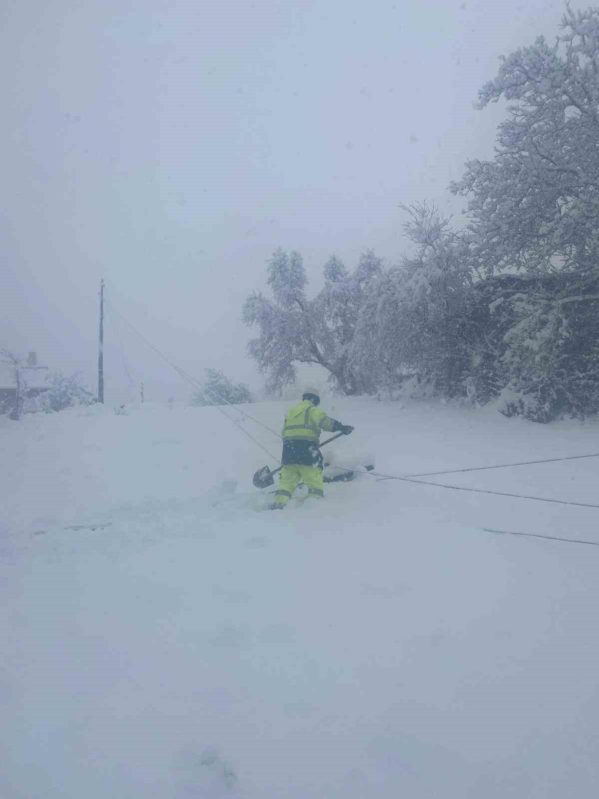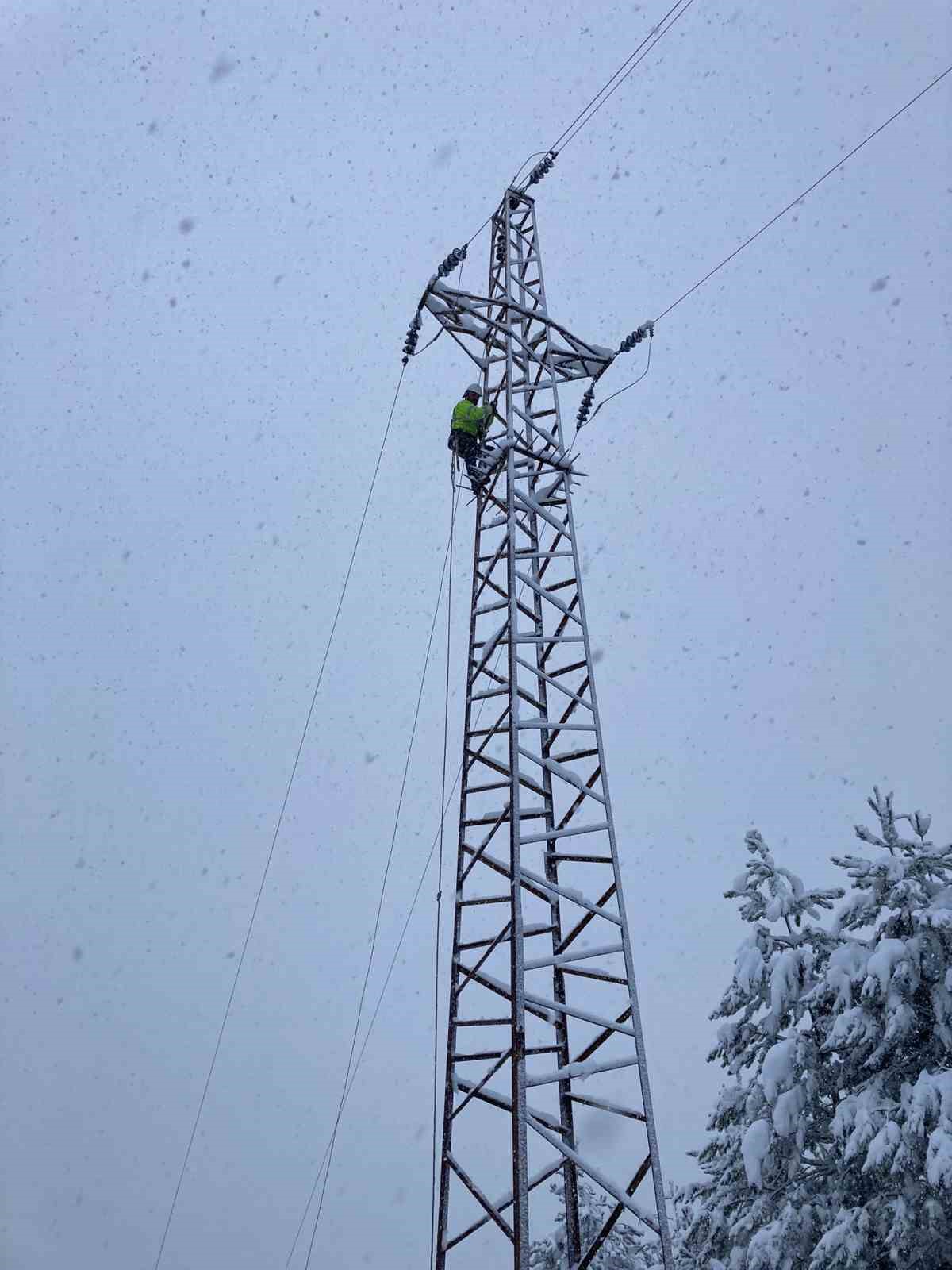 Ormanlık ve yüksek rakımlı alanlarda kar kalınlığının yer yer 1,5 metreyi aşması sahaya erişimi zorlaştırırken; ağaç devrilmeleri, buz yükü ve iletken sarkmaları gibi arızalar yaşanıyor. Araçla ulaşılamayan noktalara yaya olarak ilerleyen ekipler, enerji arzının devamı için yoğun çaba harcıyor. Kritik bölgelerde drone destekli hat kontrolleriyle arızalar hızla tespit edilirken, vinç ve iş makineleri de hazır bekletiliyor.