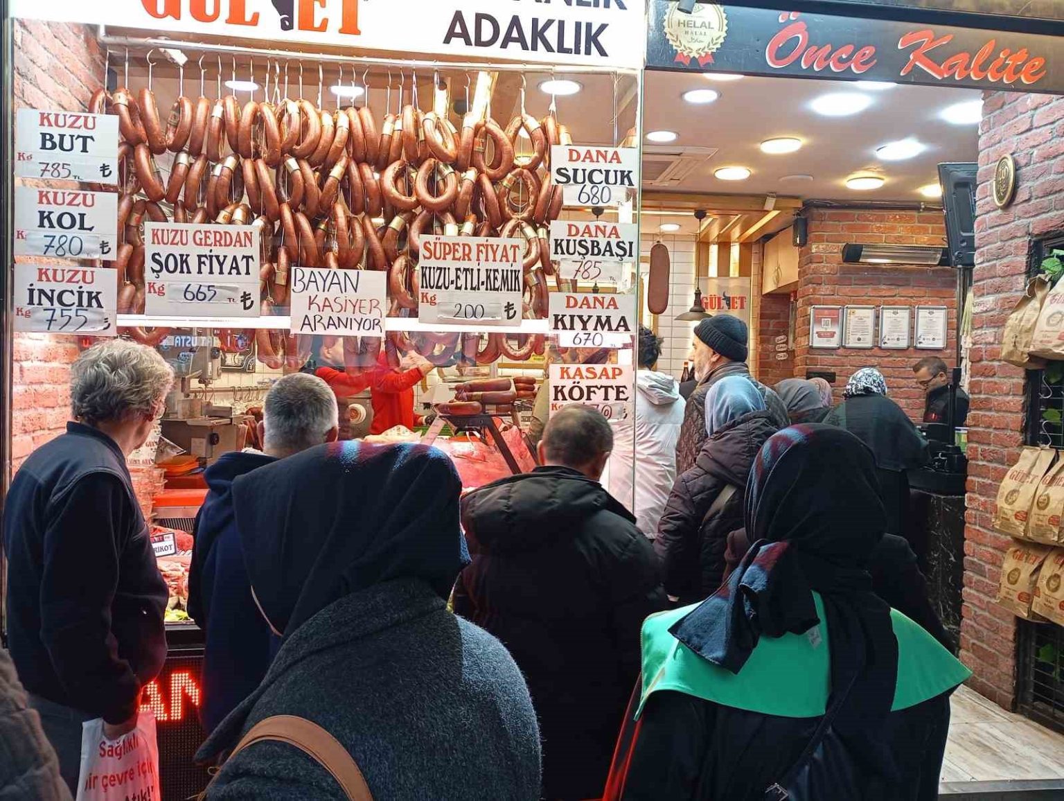 Öte yandan kasaplarda satılan et fiyatları da dikkat çekti. Kuzu butun kilogramı 785 lira, kuzu kol 780 lira, kuzu incik 755 lira, kuzu gerdan 665 lira ve kuzu etli kemik 200 liradan satışa sunuluyor. Dana ürünlerinde ise sucuk 680 lira, kuşbaşı 785 lira, kıyma 670 lira ve kasap köfte 670 liradan alıcı buluyor.