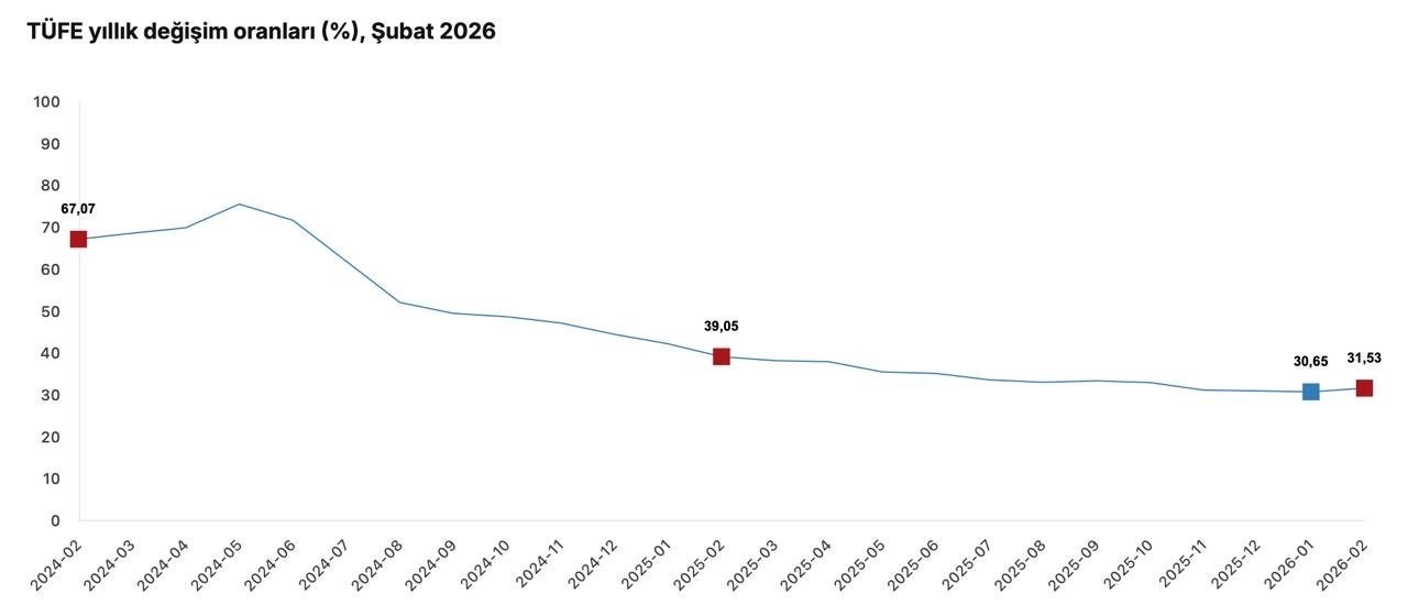Cumhurbaşkanı Yardımcısı Cevdet Yılmaz, “Şubat ayı enflasyonu, hava şartlarının etkisiyle artan gıda fiyatlarının öncülüğünde yüzde 2,96 olarak gerçekleşmiş, yıllık enflasyon yüzde 31,53’e yükselmiştir” dedi. Yılmaz ayrıca, “Son dönemde bölgemizde yaşanan jeopolitik gelişmelerin geçici nitelikteki etkilerini sınırlamaya yönelik çalışmalarımıza da ilgili tüm kurumlarımızla eşgüdüm içinde devam edeceğiz” açıklaması yaptı.