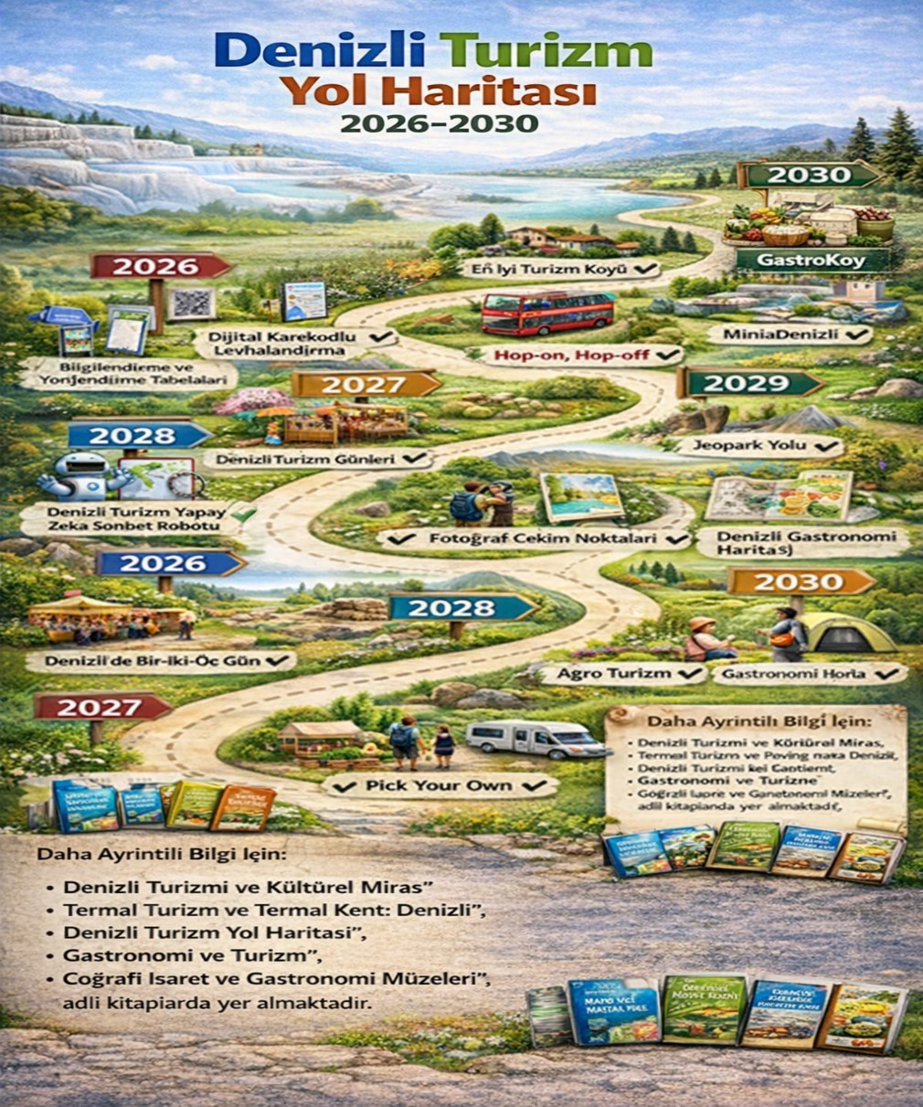 Prof. Dr. Serkan Bertan tarafından hazırlanan Denizli Turizm Yol Haritası; kamu kurumları, yerel yönetimler, üniversiteler, sivil toplum kuruluşları ve özel sektörün ortak hareket etmesini hedefliyor. Yol haritasının hayata geçirilmesiyle Denizli’nin yalnızca günübirlik ziyaret edilen bir destinasyon olmaktan çıkarak, konaklama süresi uzun, marka değeri yüksek bir turizm kenti haline gelmesi amaçlanıyor.