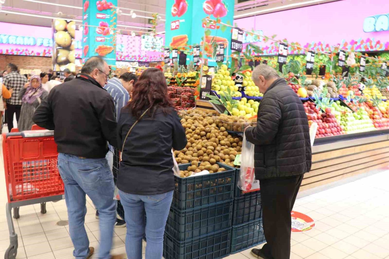 Denizli’de bayram alışverişini ekonomik hale getirmek isteyen vatandaşlar, indirim kampanyalarına devam eden alışveriş merkezlerinde yoğunluk oluşturdu. Ramazan ayı boyunca süren indirimli satış geleneğini bayram süresince de devam ettirme kararı alan market yönetimi; özellikle bayramın vazgeçilmezi olan şekerleme grupları ile temel gıda maddeleri olan kırmızı ve beyaz et reyonlarında büyük fiyat avantajları sundu. Manav reyonunda da taze ürünlerin uygun fiyatla raflarda yer almasıyla birlikte market içerisinde adeta adım atacak yer kalmadı. Bayram sofralarını donatmak isteyen Denizlililer, marketin sunduğu bu fırsatlara yoğun ilgi göstererek uzun kuyruklar oluşturdu. Bayram öncesi alışverişini uygun fiyatlarla yapmak isteyen çok sayıda vatandaşın akın ettiği markette zaman zaman yoğunluk yaşandığı gözlendi.