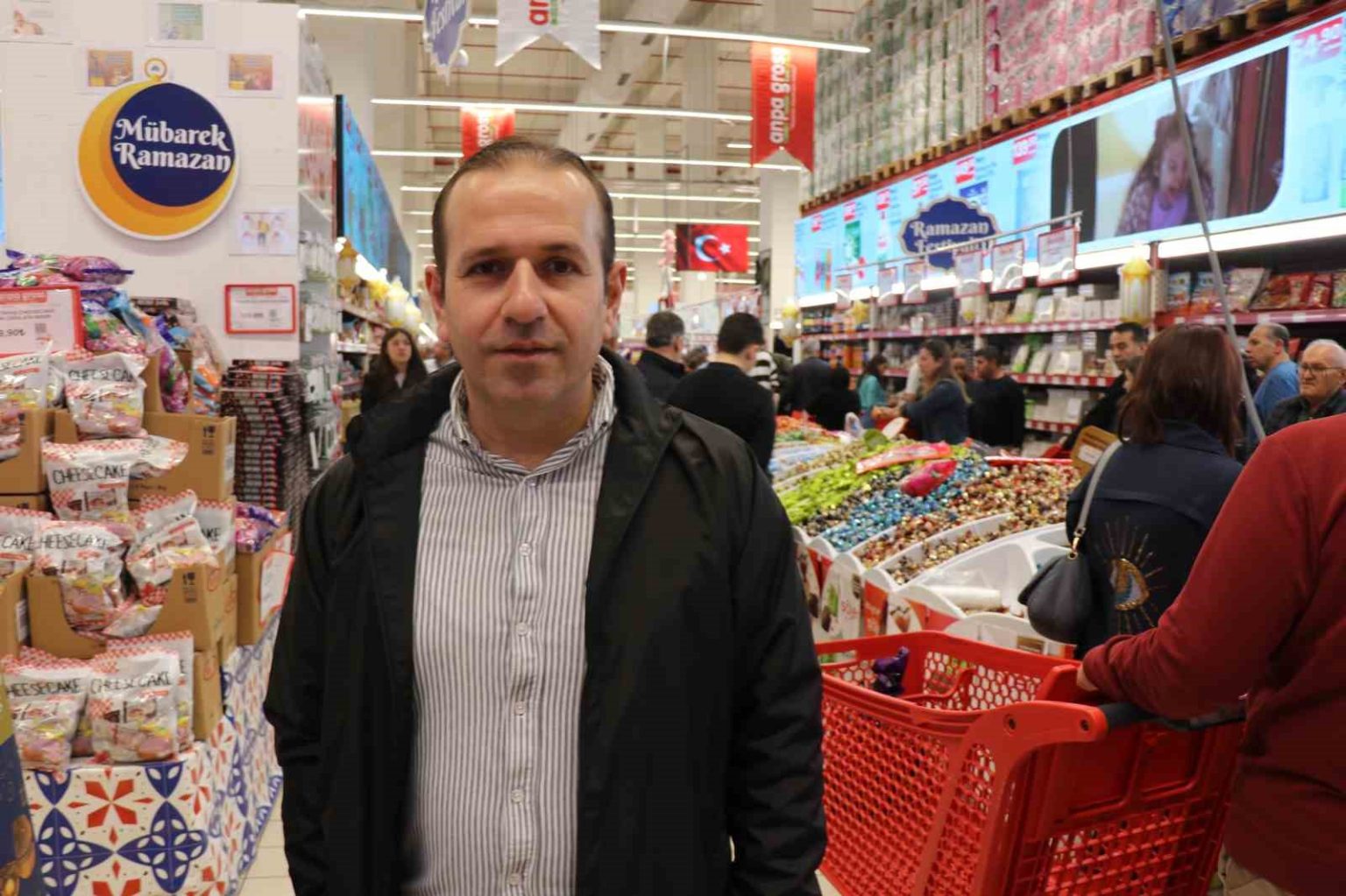 Eşiyle bayram alışverişi yapmaya gelen Sedat Akar, “Anpagross marketin indirimleri çok güzel oluyor. Bu yüzden memnunuz. Özellikle şeker almaya geldim. Eşim şekeri çok seviyor. Bende tatlıyı seviyorum. Şimdi de baklava almaya gidiyoruz” diye konuştu.