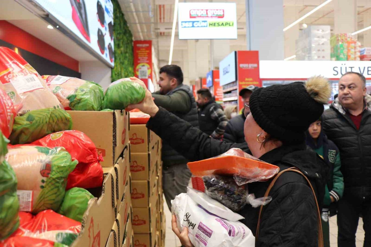 Fiyatların uygun olduğunu ifade eden diğer vatandaşlar ise, “Temel ihtiyaç alışverişimizi yapıyoruz. Fiyatlar çok uygun. Kampanyalı fiyatlar bol bol alıyoruz. Evimizin ihtiyaçlarını alıyoruz. Fiyatlar çok uygun. Kalabalıktan da bunu anlamak mümkün. İzdiham yaşanıyor” ifadelerini kullandı.