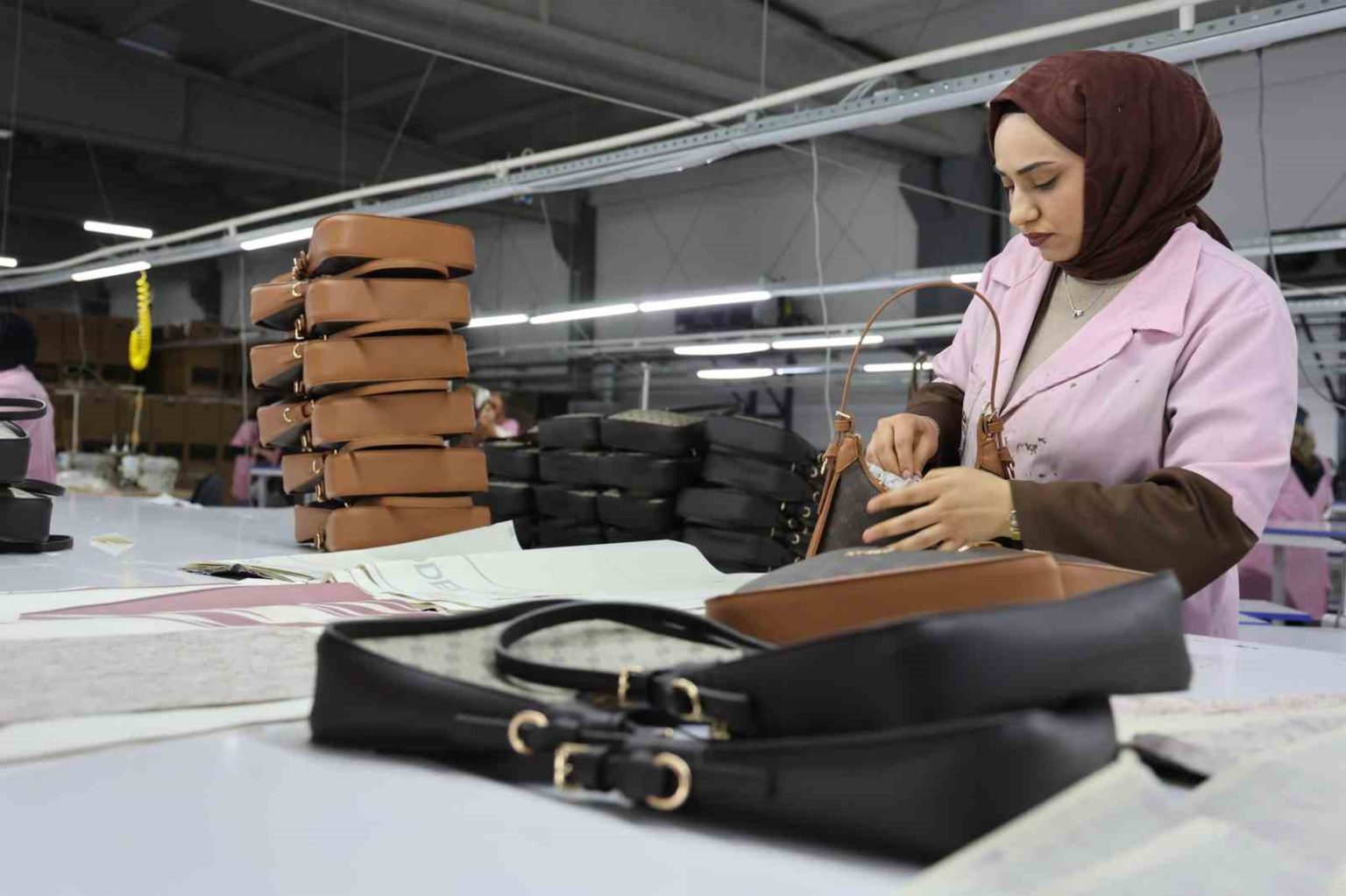 Fabrikanın Elazığ OSB’de bulunduğunu aktaran Gürkan Talo, “12 bin metrekare kapalı alanda 800’e yakın personelimizle Elazığ’dan 26 ülkeye ihracat yapan çanta fabrikasıdır. Kadın kol çantasından, kedi-köpek çantalarına, elektrikli araçların batarya çantalarına kadar üreten bir fabrikayız. Aynı zamanda istihdamın yüzde 99’ü kadın personelden oluşmaktadır. Personelimizin hiçbirinin tecrübesi yokken şu anda hepsi tecrübeli hale geldi. Elazığ’da 3’üncü senemizi tamamladık. 3 sene içerisinde gelmediğimiz günlere üzülüyoruz. Elazığ’ı çok seviyoruz. Elazığ tüm lokasyonlara yakın. Orta Doğu piyasasına lojistik anlamında yakın. Uygun fiyata lojistik fiyatlar bulunmaktadır. Şu an 2 kıtada ihracatımız var. Hedefimiz 3 kıtaya çıkarmak. Kapasite olarak dünyada 3. sıradayız. Hedefimiz dünya birinciliği. Avrupa’da ve Türkiye’de kapasite olarak birinciyiz. Asıl amacımız dünyada kapasite olarak birinci sıraya ulaşmak. Rakibimiz Çin ve Pakistan. Pakistanlı rakibimiz ile aramızda yüzde 10’a yakın bir fark var. Çinli rakibimizi geçmek için biraz daha çalışmamız gerekiyor. Azimliyiz yakalayacağımıza inanıyoruz” diye konuştu.