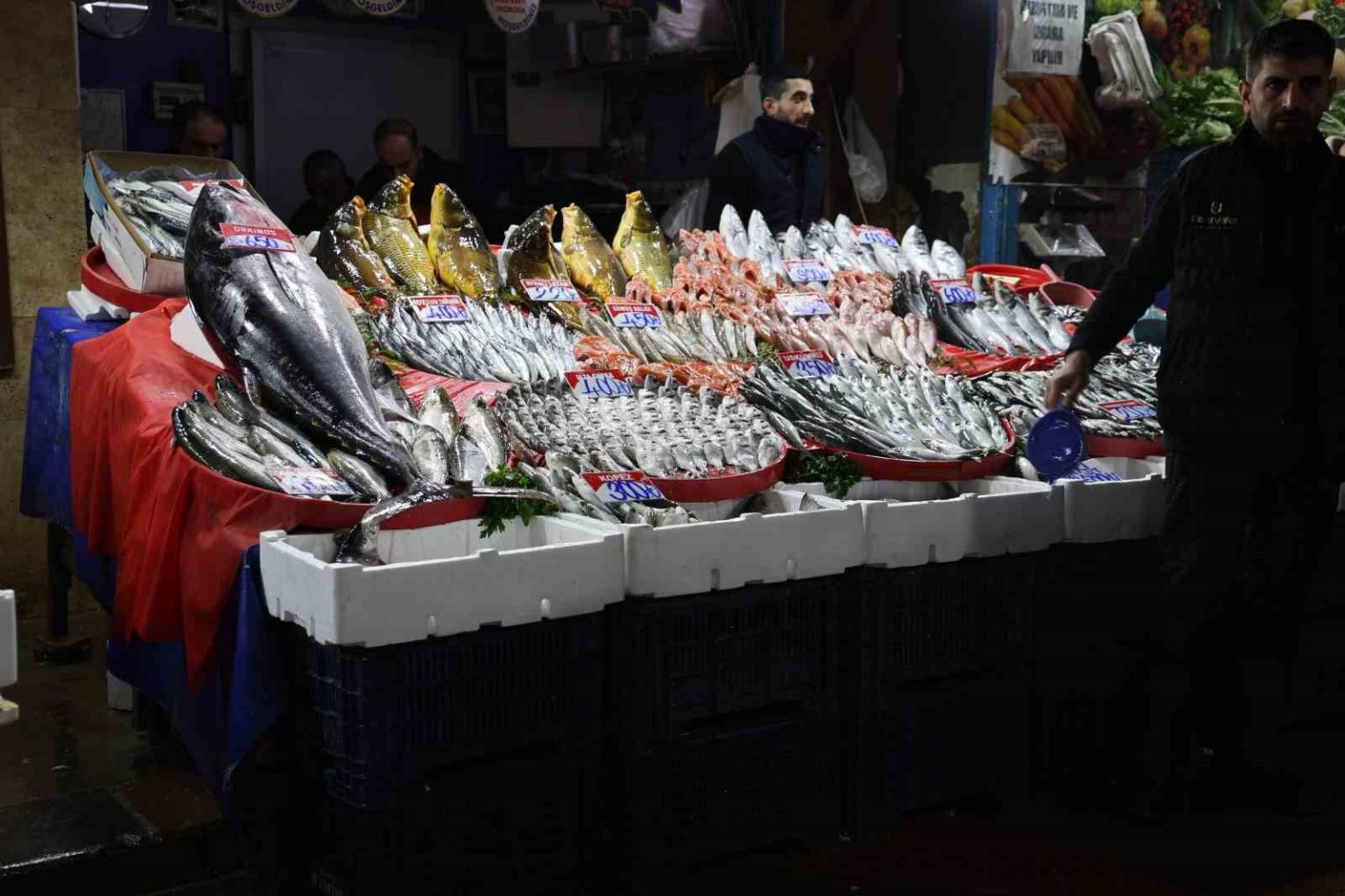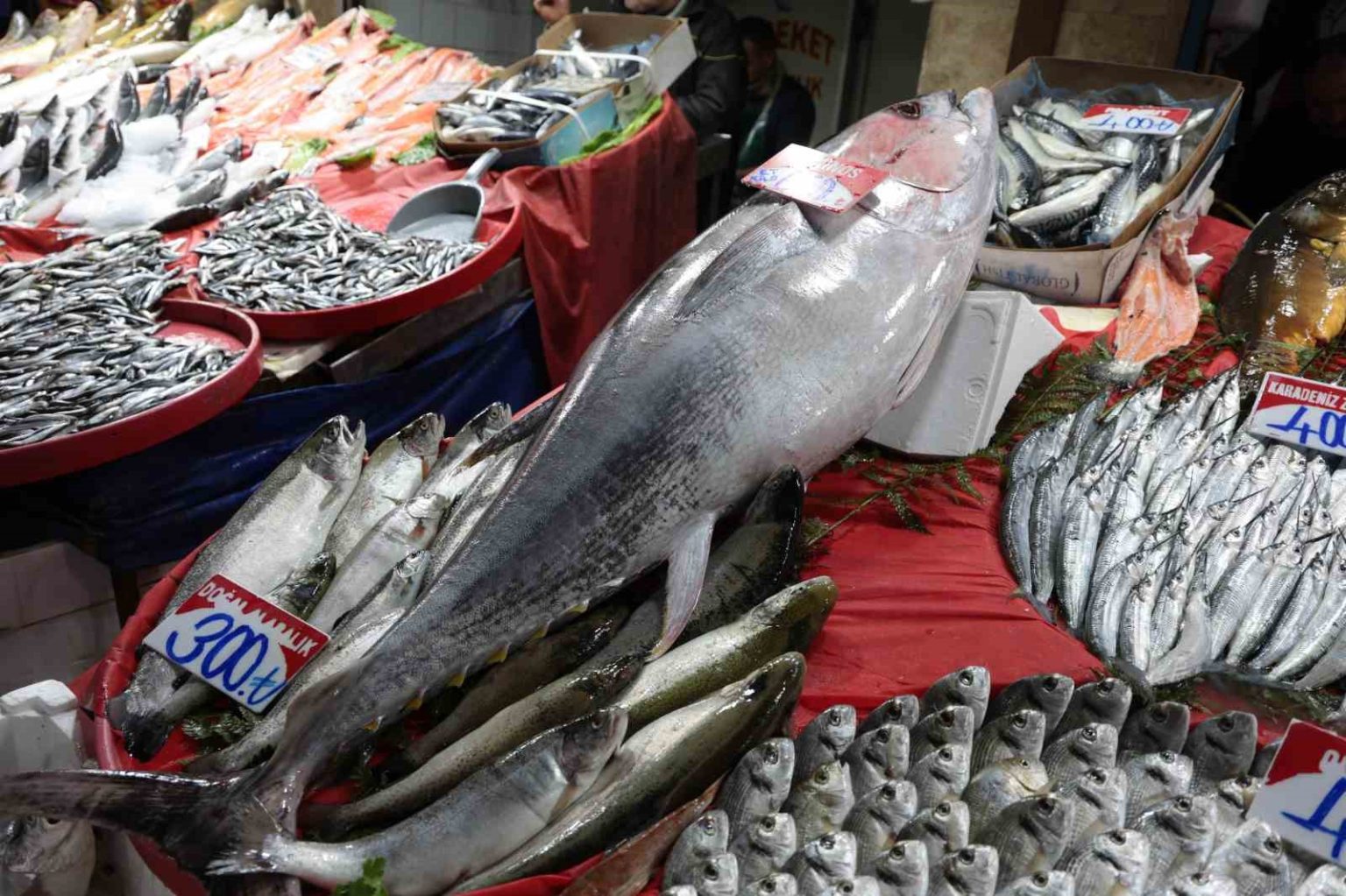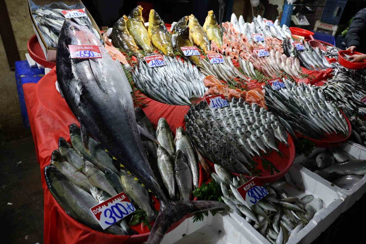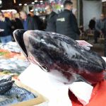 Elazığ Kapalı Çarşı’da yer alan balıkçı dükkanında, Akdeniz bölgesinden getirilen 85 kilogramlık orkinos satışa çıkarıldı. Deniz balıklarında bu sezon yaşanan verimlilik sayesinde tezgahlara giren dev balık, bölge halkının alışık olduğu tatlı su balıklarının aksine boyutuyla dikkat çekti. 1 metre 40 santim uzunluğunda olan orkinosun kilosunu 650 liradan satışa sunduklarını ifade eden Ebubekir Buluş, halk arasında “ton balığı” olarak bilinen bu balığın özellikle çocuk gelişimi için tercih edildiğini belirtti.