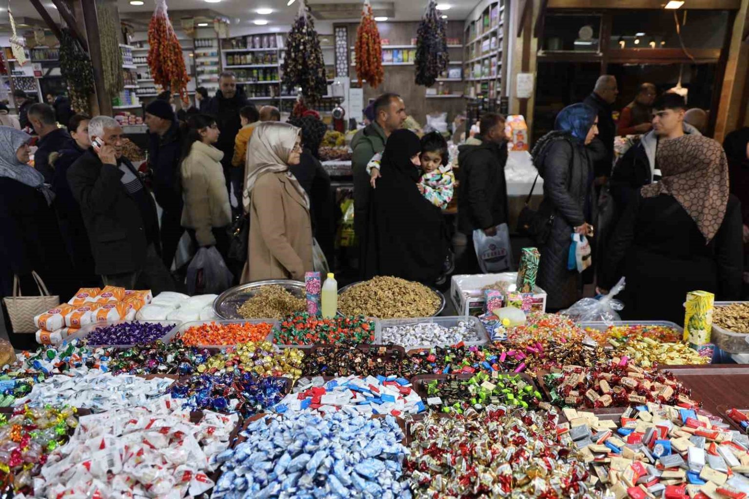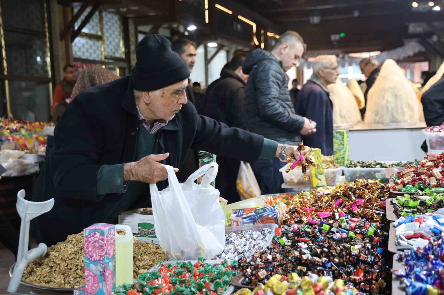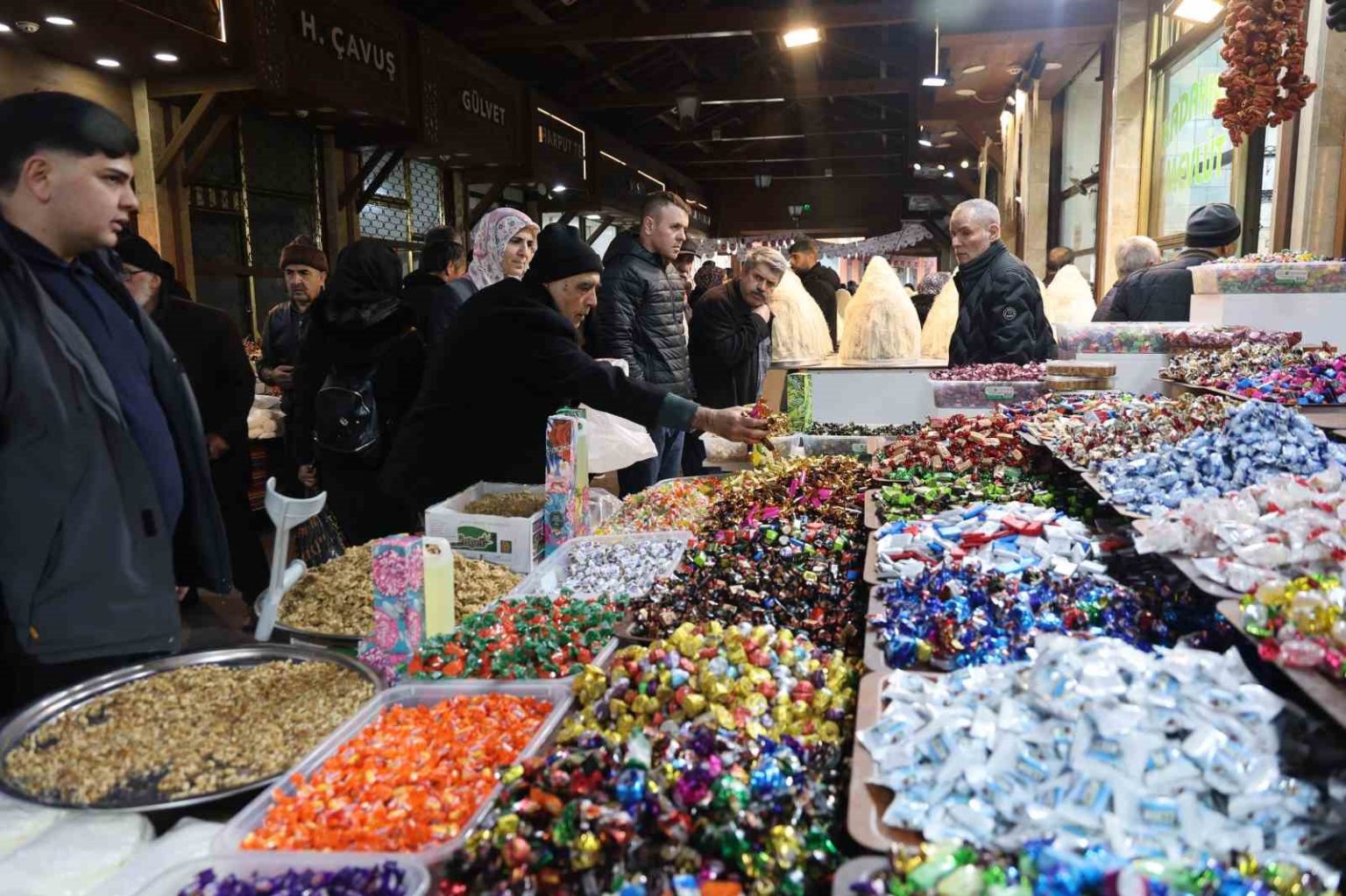 Şeker, kadayıf, orcik ve pestil satışlarından dolayı Kapalı Çarşı’da yoğunluk oluştuğunu aktaran Kapalı Çarşı Derneği Başkanı Hasbi Yargıç Emir, “En temiz ve hijyenik ürünler Kapalı Çarşı’da satılıyor. Mevsiminde en uygun ürünler burada satılıyor. Şuan da eski bayramların tek örneklerini Kapalı Çarşı’da bulabiliyoruz. Esnaf da mutlu alışveriş yapanlarda mutlu. Fiyatlarımız aynı. Kapalı Çarşı esnafları olarak aldığımız kararlarda zam yapmamaya karar verdik. Kapalı Çarşı vatandaşını düşünüyor. Eski şekerler yok, eskiden 2 ila 3 kilo arasında vatandaşlar şeker alırdı şimdi ise en fazla yarım kilo alıyorlar. Bunun nedeni de çocuklar eskisi gibi gelmiyor. Maalesef eski özlemimiz kalmadı” ifadelerini kullandı.
