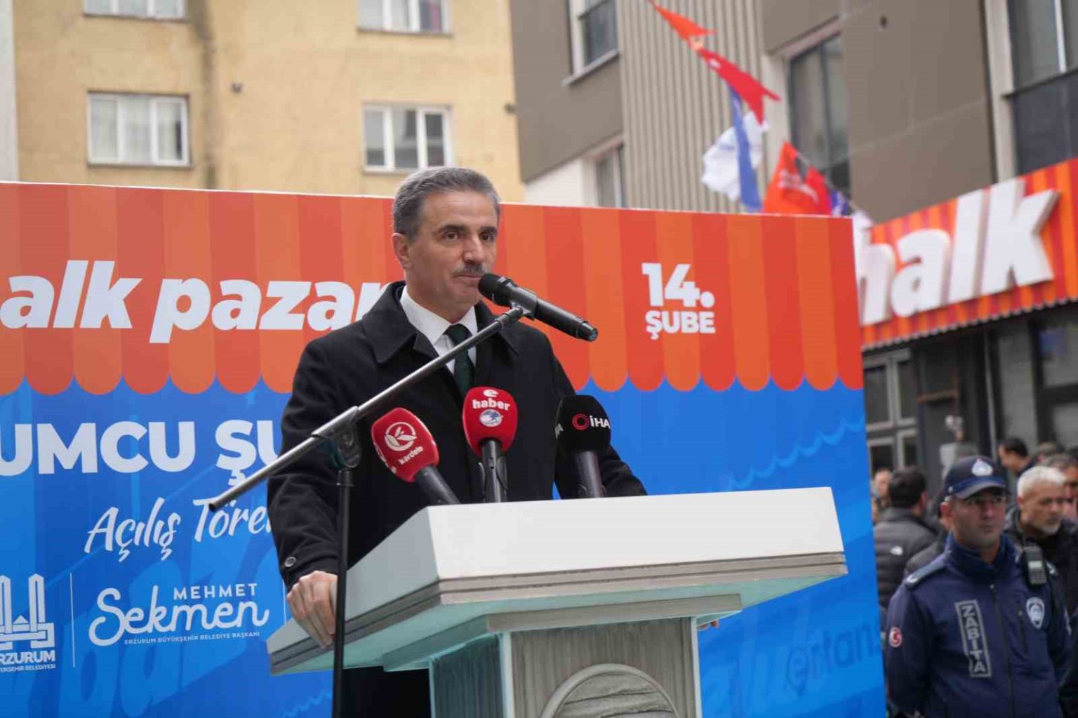Halk Pazarlarının, Erzurum’dan yükselen bir ses ve Türkiye’ye örnek olan bir model olduğunu vurgulayan Erzurum Büyükşehir Belediye Başkanı Mehmet Sekmen, “Bugün artık sadece Erzurum’un değil, Türkiye’nin konuştuğu, yerel yönetimlerin örnek aldığı, sosyal belediyeciliğin en güçlü uygulamalarından biri haline gelen bir projeyi konuşuyoruz. Belediyecilik sadece yol yapmak değildir, Belediyecilik sadece bina yapmak değildir. Belediyecilik, vatandaşın derdiyle dertlenmektir. Belediyecilik, vatandaşın sofrasına katkı sunmaktır. İşte biz bunu yapıyoruz. Bugün itibariyle Erzurum’umuzun dört bir yanında hayata geçirdiğimiz ve şimdi de 14. Şubemiz olan Mumcu Halk Pazarımızın açılışını yapıyoruz. Bu proje aynı zamanda üretimi destekleyen bir projedir. Bizler yerel üreticimizle doğrudan temas kurduk. Ve böylelikle üretici emeğinin karşılığını alıyor. Vatandaş uygun fiyata ürün alıyor” dedi.