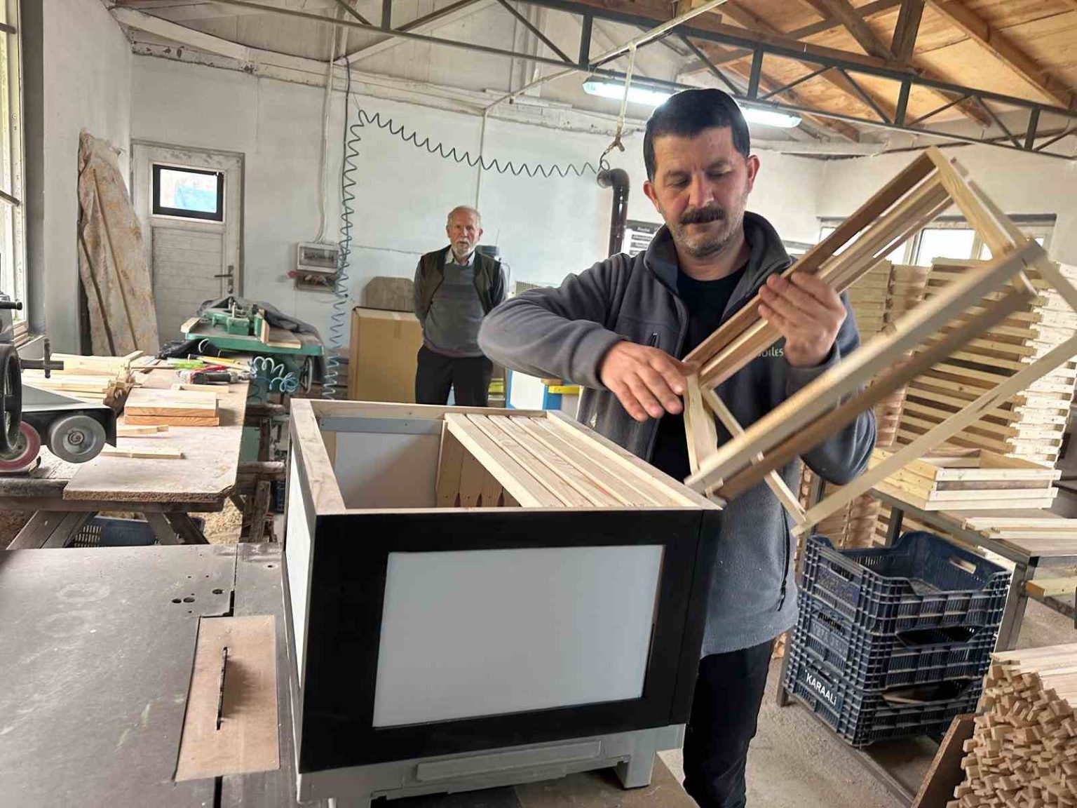 Bursa’nın İnegöl ilçesinde arıcılıkla uğraşan Hayri Soylu, arıcılardan gelen talep üzerine sarı-kırmızı, sarı-lacivert, siyah-beyaz, yeşil-beyaz gibi renklerde ısı yalıtımlı kovan üretimi de yapıyor.