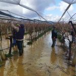 Sarıgöl ilçesine bağlı Emcelli Mahallesi Sütmezli mevkisinde bağların göle dönmesine rağmen budama yapan işçiler, ekmek parası için suyun ve çamurun içinde mesai yapıyor. Bağlarda oluşan su birikintileri, çalışma şartlarını oldukça zorlaştırırken, işçiler işlerini aksatmadan sürdürmeye devam ediyor.