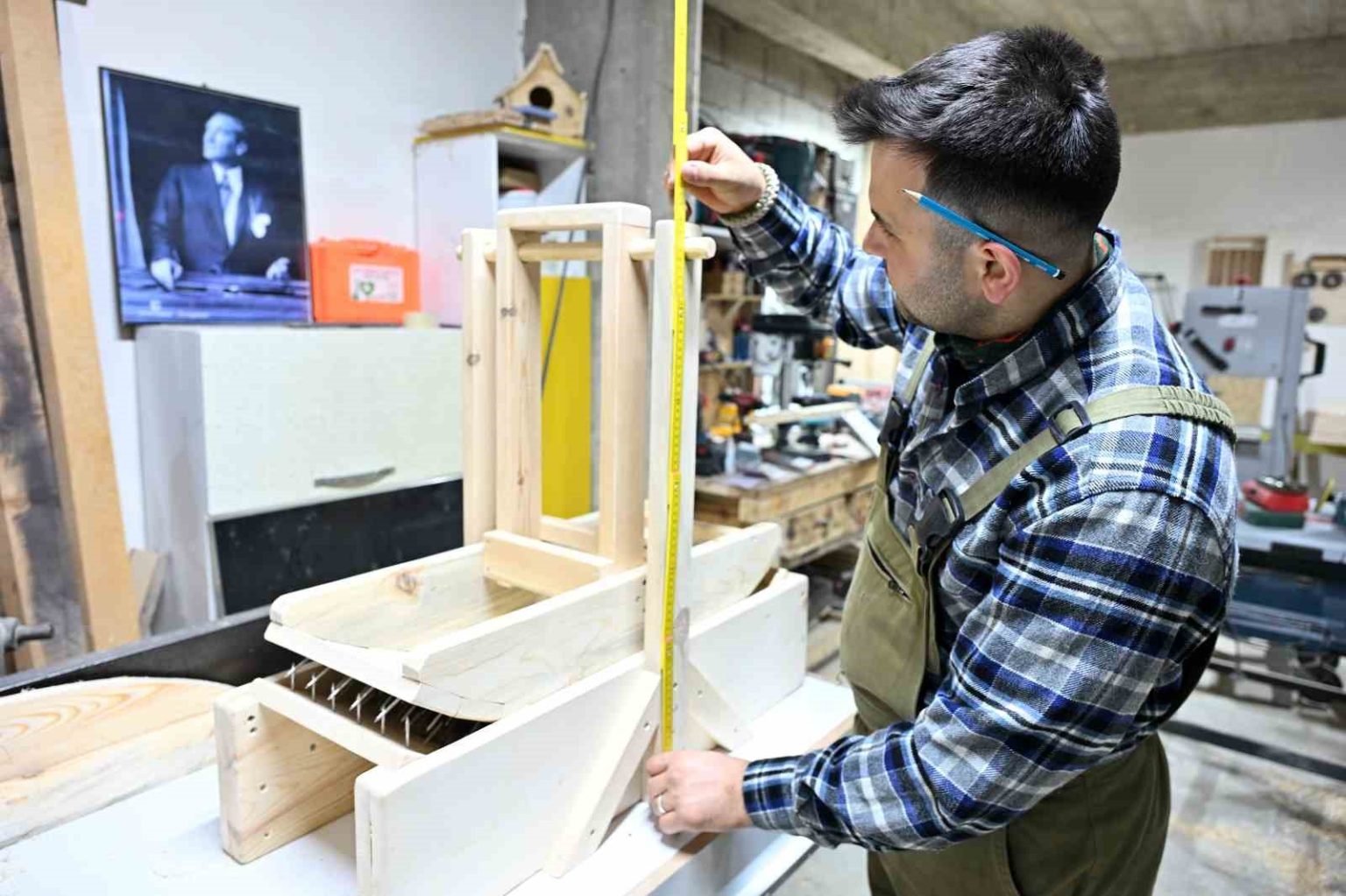 Yaklaşık iki aylık bir AR-GE süreci ve yarım metreküplük kereste sarfiyatıyla deneme yanılma yöntemlerini kullanan Can, sosyal medyadan gelen geri bildirimlerle cihazı mükemmel hale getirdi.