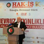 Aynı şekilde Nevruz Bayramı’nın da ideolojik baskı ve kavgaların odağından kurtulduğuna dikkati çeken Arslan, “Biz bugün Nevruz’un bu yönünü konuşuyoruz. Yakın tarihte Nevruz günlerinde yapılan kavgaların, çatışmaların hatta ölümlerin olduğu Nevruzları unutmadık, hatırlıyoruz. Onun için Allah’a şükür Nevruz’u da normalleştirdik. Bugün Nevruz’u gerçek anlamıyla konuşabiliyorsak, bütün Türk dünyası ve özellikle Orta Asya toplumlarının hemen hemen pek çoğunun da sahiplendiği Nevruz’u bugün HAK-İŞ’te de konuşup kutlayabiliyorsak, Türkiye önemli iki sorunu önemli, iki kavga gününü barışa dönüştürerek hayırlı bir iş yapıldı. Burada Sayın Cumhurbaşkanımız da hükümetimize bu konudaki gayret duaları herkese teşekkür ediyoruz” değerlendirmesinde bulundu.