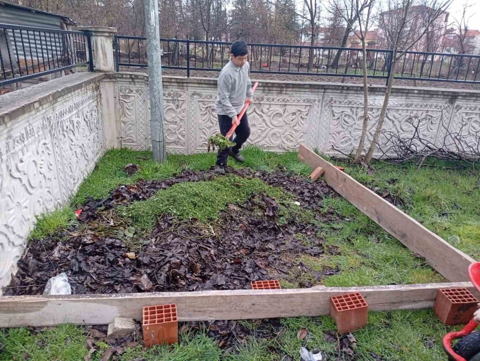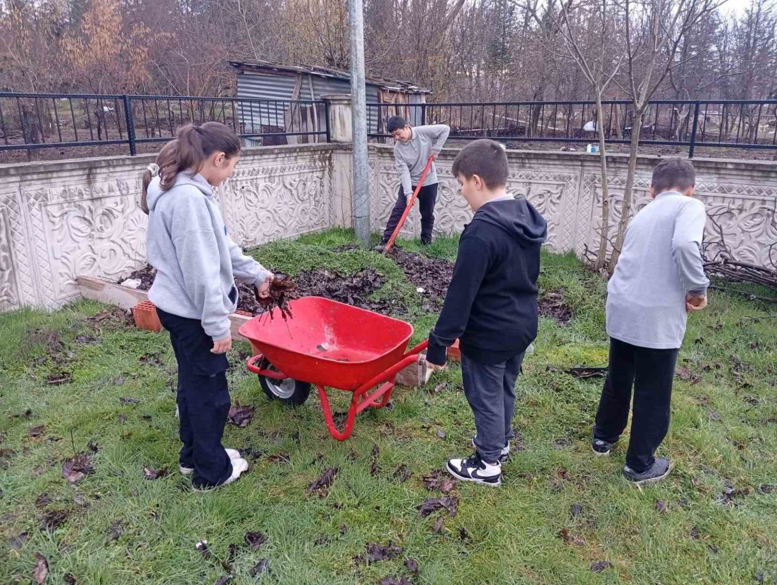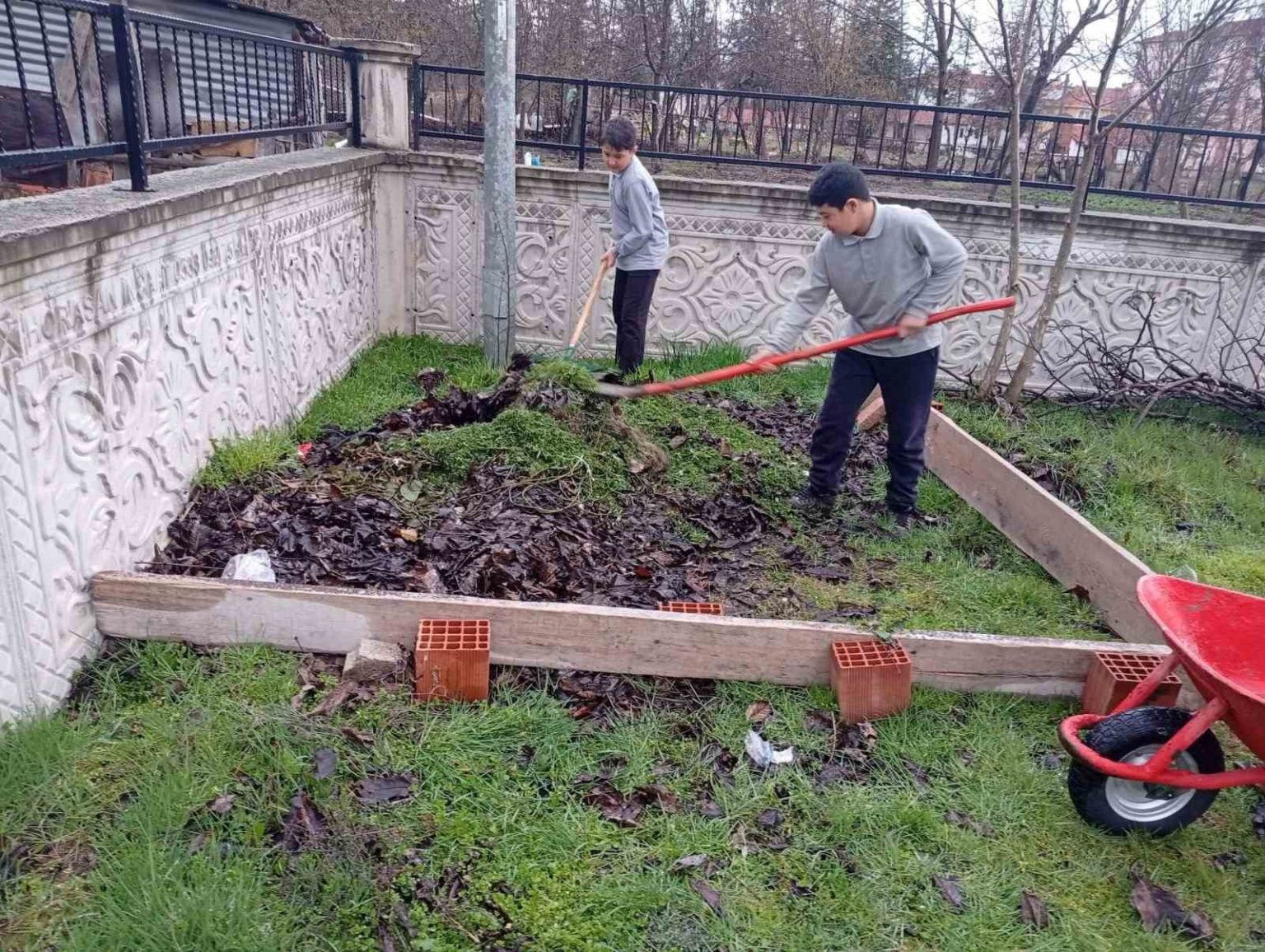 Kütahya’nın Hisarcık ilçesinde bulunan Anadolu İmam Hatip Lisesi’nde (AİHL) okul bahçesindeki yapraklar ve biçilmiş otlardan organik gübre üretimi için çalışma başlatıldı.