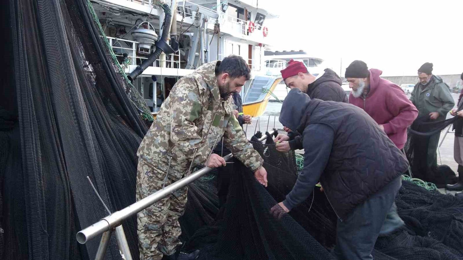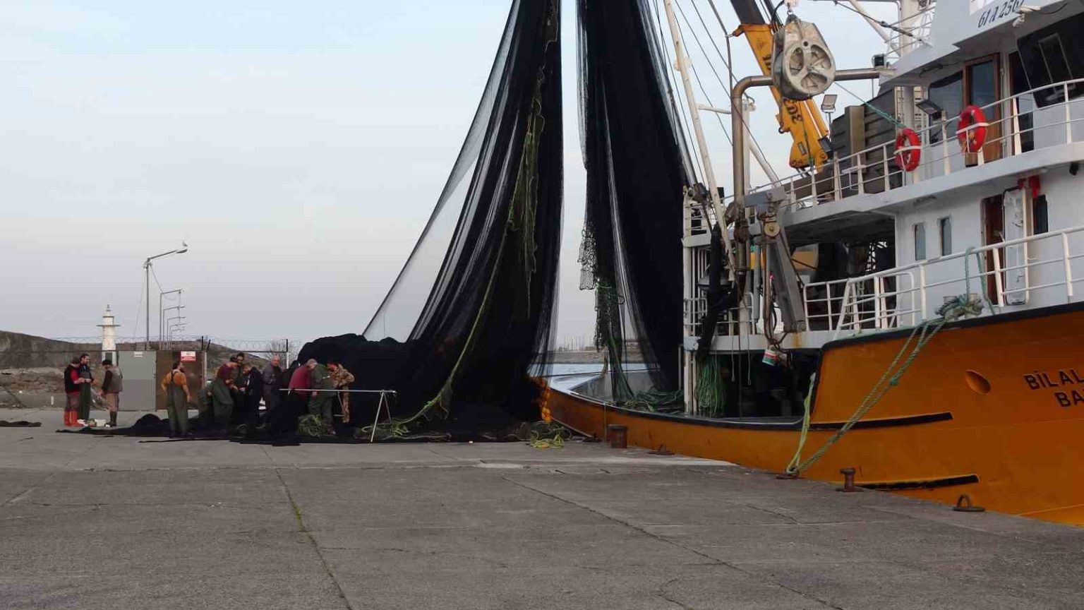 Kaptan yardımcısı Harun Yılmaz ise yırtılan ağları tamir ettiklerini kaydederek “Sezon, hamsi açısından verimli geçti ancak fiyatlar oldukça düşük kaldı. Bu nedenle bolluk yaşanmasına rağmen ekonomik anlamda beklentiyi karşılamadı. Şu sıralar ağırlıklı olarak istavrit avcılığı yapıyoruz. Genellikle Eynesil ile Of arasındaki bölgede avlanıyoruz. Şu anda hamsi avı yok; İğneada’da zaman zaman görülüyor ancak orada da süreklilik göstermiyor. Şu an ağ tamiriyle uğraşıyoruz. Ağlarımızın büyük gemilerin çapaları nedeniyle yırtıldığını düşünüyoruz. İki boy ağımız zarar gördü. Ayrıca denizden çöp de çıkıyor; özellikle Beşirli tarafında bu durum daha fazla görülüyor” diye konuştu.