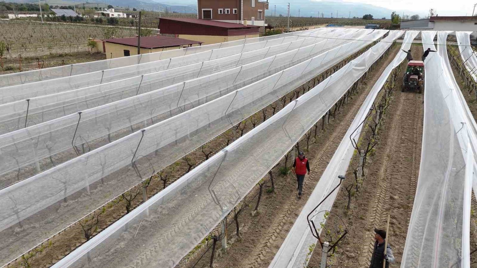 Kurulan sistemin sadece iklim şartlarına karşı değil, üretim sürecine de katkı sağladığını ifade eden Üründü, eşi Mete Üründü ile birlikte üretimi sürdürdüklerini belirterek şunları söyledi: “Ziraat teknikeri ve kadın üretici olarak bağlarımızda organik üretim yapıyorum. Son yıllarda artan iklim değişiklikleri bizi dolu filesi kurmaya yönlendirdi. Çünkü dolu, dakikalar içinde bir sezonun emeğini yok edebiliyor. Biz de bu riski azaltmak için bağlarımızı koruma altına aldık. Dolu filesi sadece doluya karşı değil; ani soğukları kırıyor, yazın ise güneşin yakıcı etkisini azaltarak bitkinin strese girmesini önlüyor. Bu da daha sağlıklı bir gelişim sağlıyor. Aynı zamanda bu sistem, ürün zararını azaltarak ilaç ihtiyacını minimuma indiriyor ve organik üretime katkı sağlıyor. Kadın üretici olarak bu işi yapmak benim için çok kıymetli. Biz sadece üretmiyoruz; doğayı koruyarak, geleceği düşünerek üretmeye devam ediyoruz.”