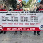 DİSK/Genel-İş İzmir 10 Nolu Şube çatısı altında örgütlü olan Karşıyaka Belediyesi Kent A.Ş. işçileri, yaşadıkları mali krizi ve mağduriyeti kamuoyuna duyurmak amacıyla Karşıyaka Çarşı girişinde bir araya geldi. Vatandaşlara broşür dağıtan işçiler, aylardır süregelen maaş krizinin artık hayatlarını sürdürülemez noktaya getirdiğini ifade etti.