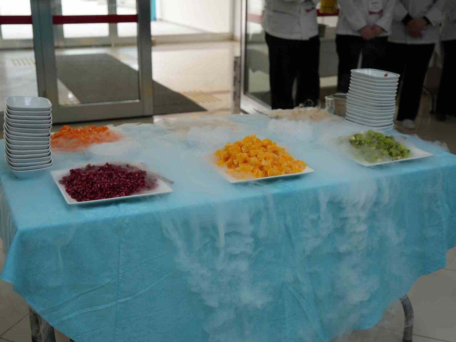 Etkinlik kapsamında öğrenciler, gastronomi alanında hazırladıkları meyvelerle “ateş meyvesi” şovu yaparak hünerlerini sergiledi.