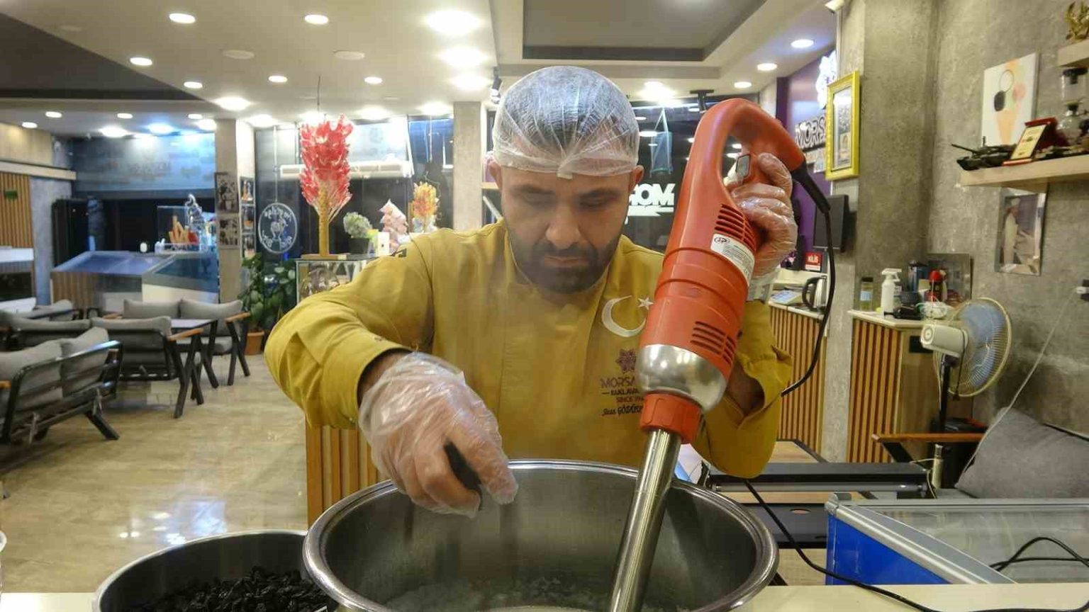 Üretimde tamamen doğal ürünler kullandıklarını vurgulayan Gözüuykulu, “Kilis keçisinin sütü, şeker, salep ve horoz karası üzümüyle kendimize ait özel bir reçete oluşturduk. Yapımı ortalama 1-1,5 saat sürüyor” şeklinde konuştu.